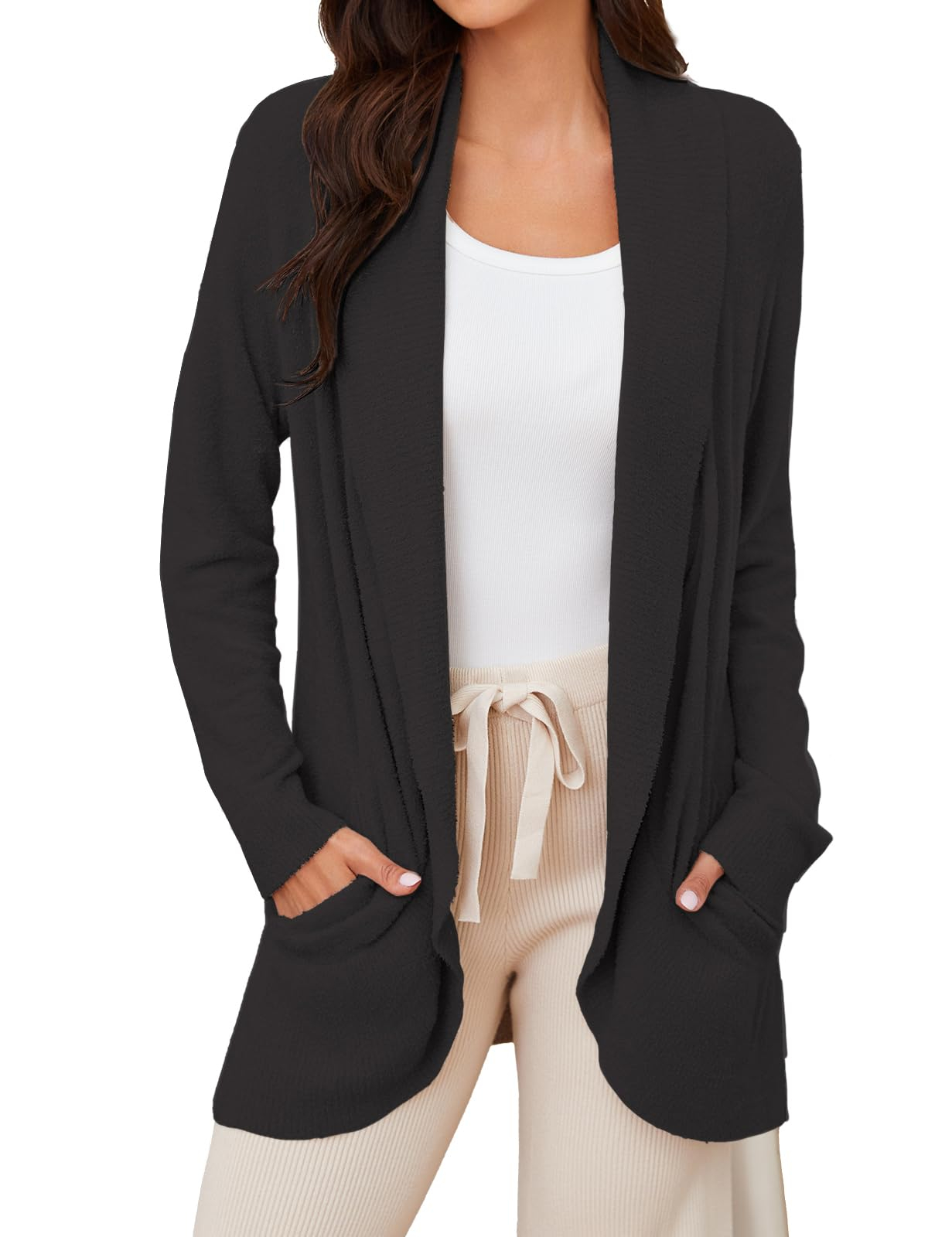 Cardigan femei- Bluza lunga, eleganta cu maneca lunga si buzunare NEGRU L