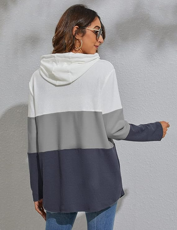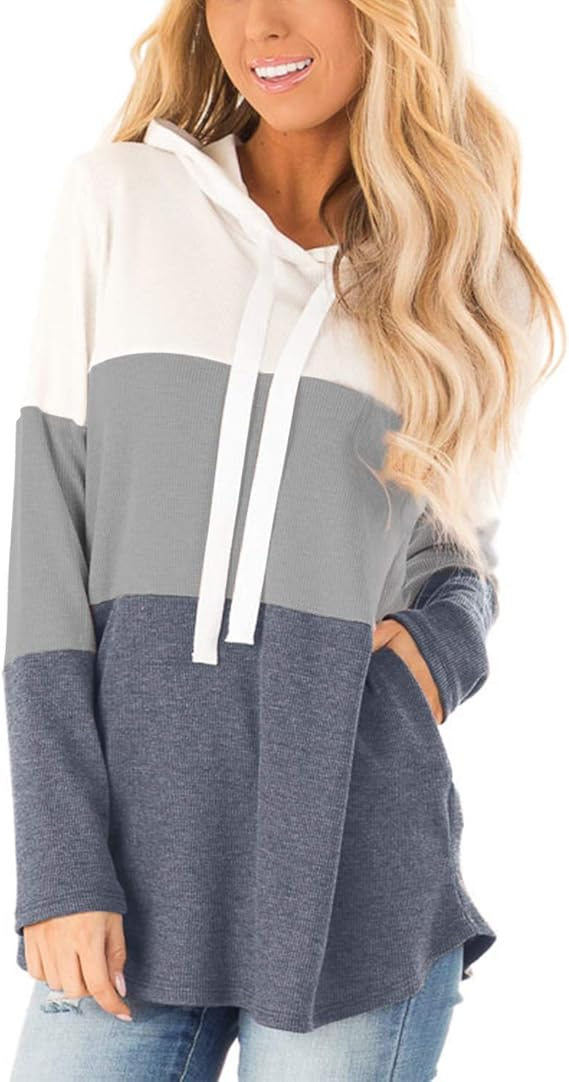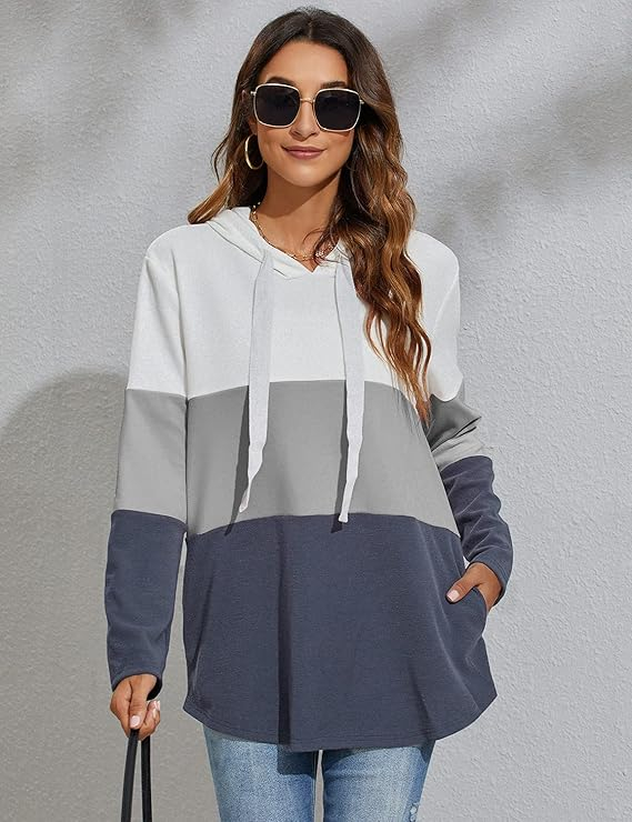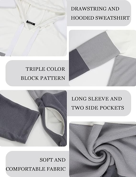 Caracteristici: Manșon Lung, Model De Bloc De Culoare Triplă, Patchwork, Buzunar Lateral, Hoodies De Șnur.