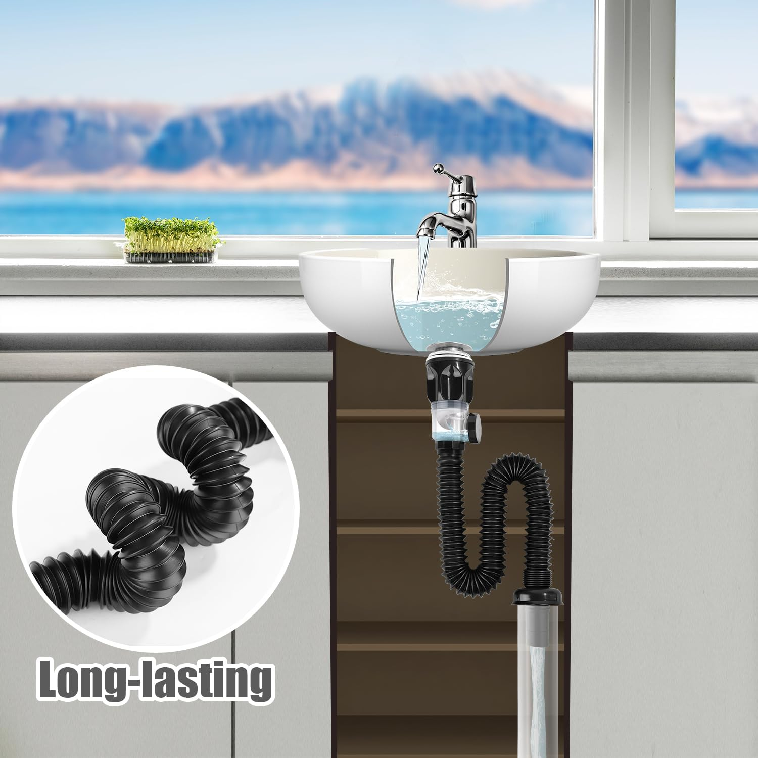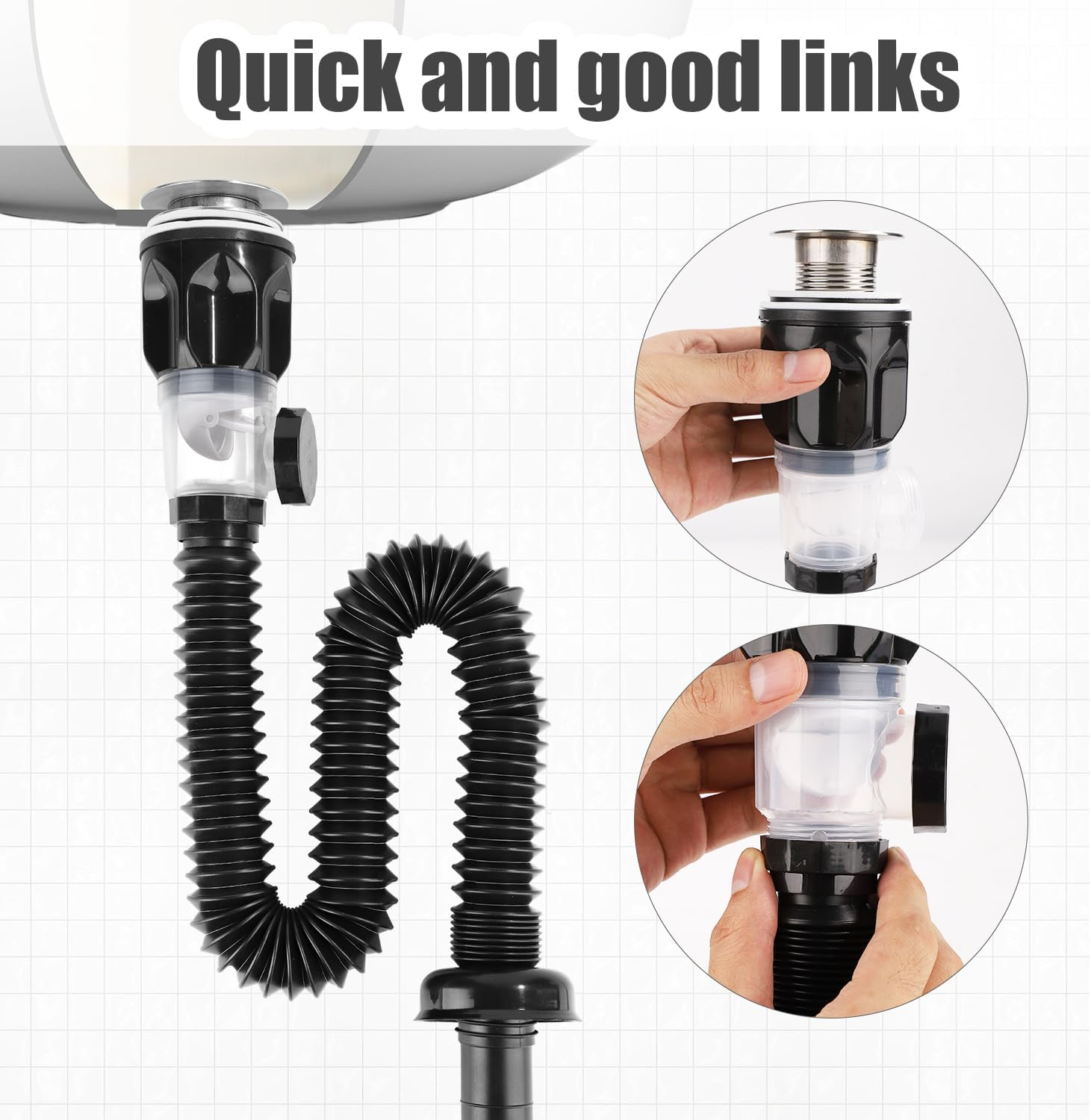 Aplicație largă: Capcana flexibilă pentru p-taizatoarea extensibilă este potrivită pentru 1-1/4", 1-1/2" și 2" găuri de scurgere. Vă rugăm să verificați dimensiunea înainte de cumpărare.