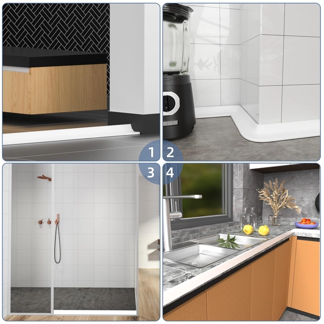 Garnitura de pervaz oferă un efect bun de blocare a apei pentru a fi utilizat în băi, bucătării și alte zone sensibile la apă. Puteți îndoi capacul de duș în funcție de mediu și, astfel, puteți crea o barieră imperioasă, adesea folosită ca prag de duș pe ușile de duș fără ramă pentru a reduce hărțuirea în băile umede