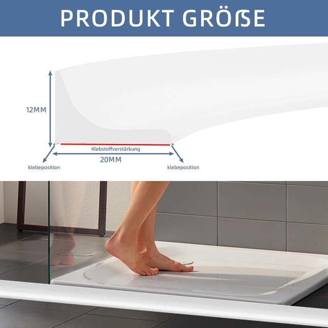 • Garnitura de pervaz oferă un efect bun de blocare a apei pentru a fi utilizat în băi, bucătării și alte zone sensibile la apă. Puteți îndoi capacul de duș în funcție de mediu și, astfel, puteți crea o barieră imperioasă, adesea folosită ca prag de duș pe ușile de duș fără ramă pentru a reduce hărțuirea în băile umede