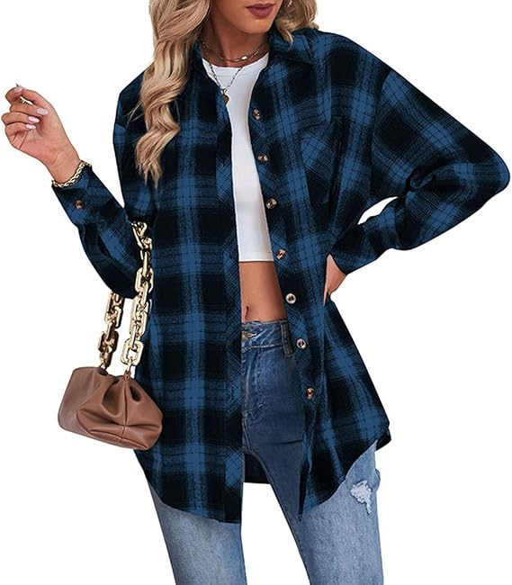 • Material: cămașă bifată pentru femei. Cămașa casual este confecționată din amestec de bumbac, super moale și cald, respirabil, material de înaltă calitate, țesătură moale și confortabilă, guler clasic de cămașă, model de verificare. Iubitul tăiat și stilul supradimensionat îl fac ușor de purtat.