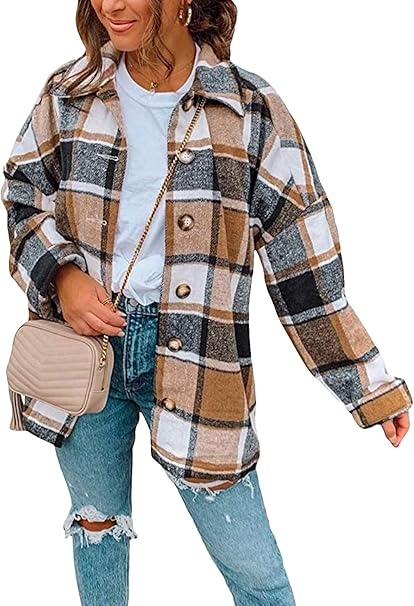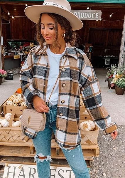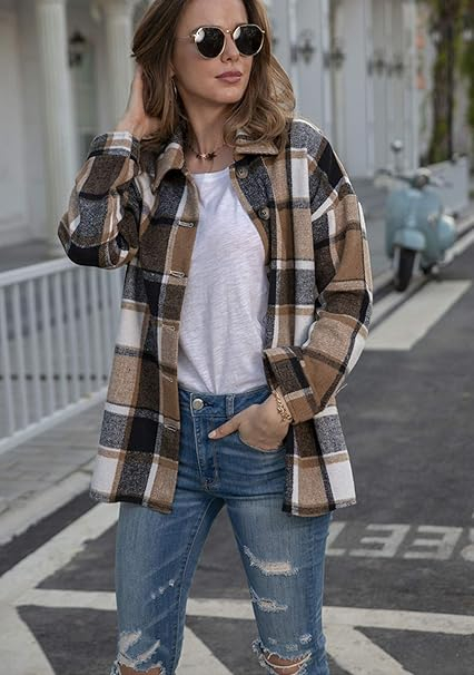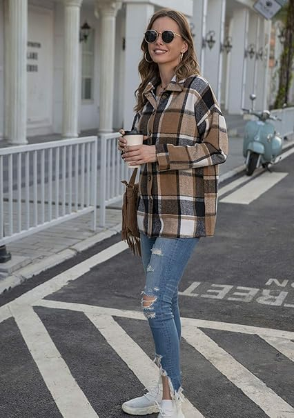 Material: cămașă bifată pentru femei. Cămașa casual este confecționată din amestec de bumbac, super moale și cald, respirabil, material de înaltă calitate, țesătură moale și confortabilă, guler clasic de cămașă, model de verificare. Iubitul tăiat și stilul supradimensionat îl fac ușor de purtat.