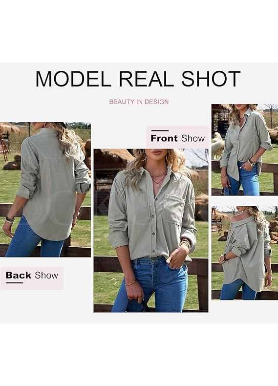 Cămăși de culoare uni, topuri din velur, guler cămașă, tunică, cămașă cu guler ridicat, cu buzunare la piept