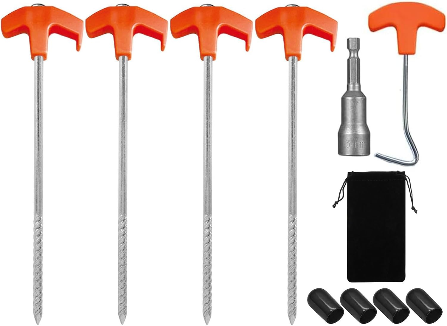 Ușor de utilizat: cui de cort pivotant cu fir sunt ușor de instalat și utilizat. Cuiele filetate hexagonale care pot fi transformate fără efort în pământ atât cu o cheie, cât și cu un burghi electric, oferă suportul perfect pentru corturi, foișoare etc.