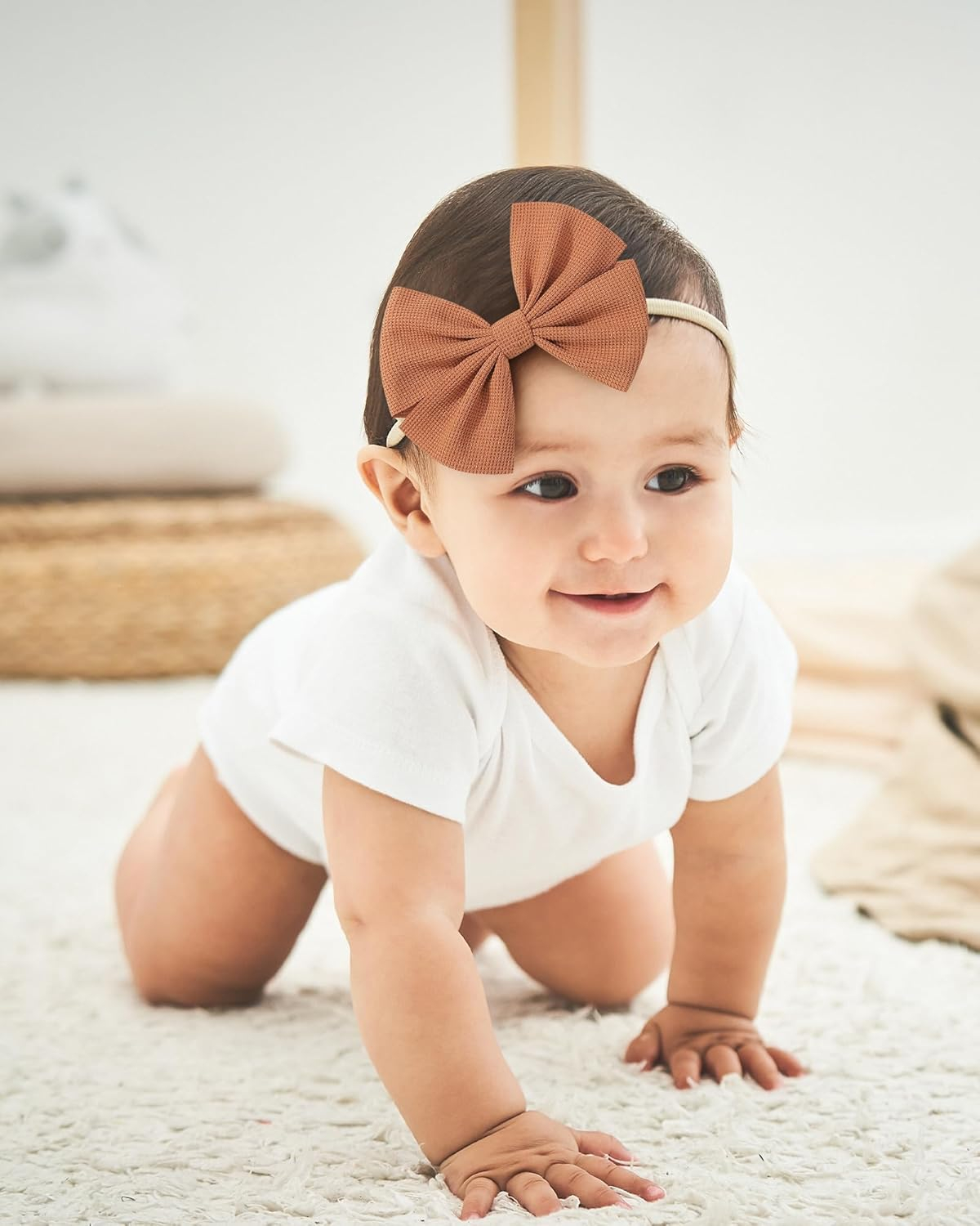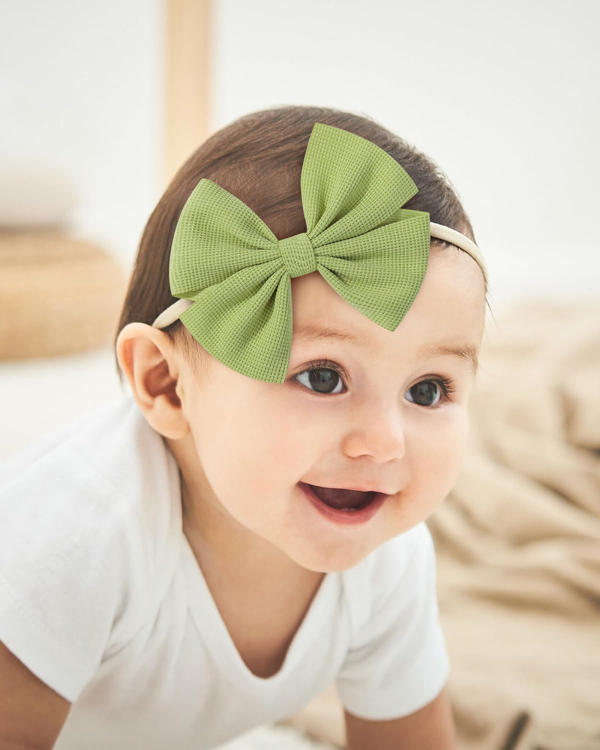 Arcurile de fete pentru copii sunt proiectate și realizate profesional manual cu țesătură de vafe. Acest material este moale și confortabil plasat pe capul unui copil. Aceasta este o alegere bună pentru nou-născuți, sugari și copii mici care învață să meargă.