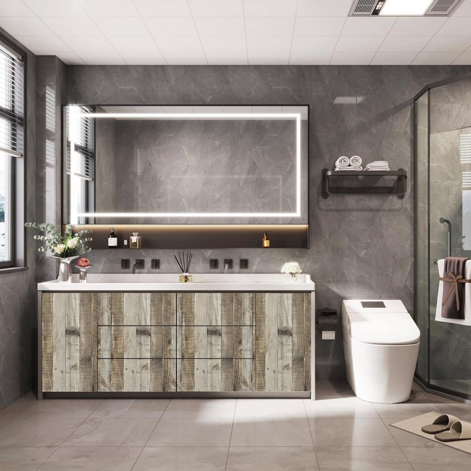 • Îngrozit și durabil: Material îngroșat: 0,26mm, rezistent la zgârieturi și abraziune, poate acoperi culorile de mobilier original. Materialul adeziv pe bază de apă, fără miros, cu cât timpul de pastă este mai lung, cu atât adeziunea este mai puternică, nu cade