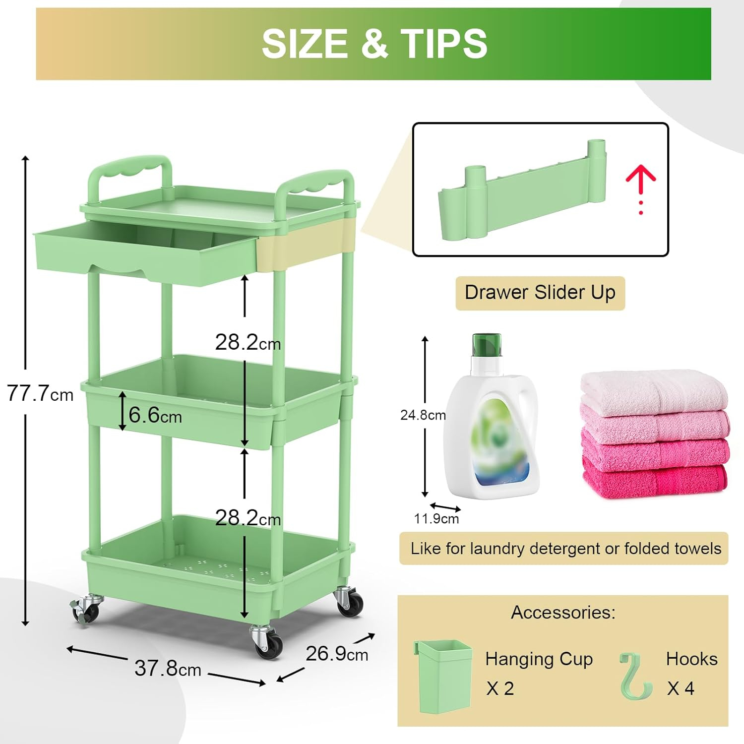 Accesorii practice incluse: acest cărucior de depozitare este echipat cu sertare pentru organizare convenabilă. Acest coș de depozitare vine cu cupe și cârlige de agățate bonus, oferind o caracter practic suplimentară pentru stocarea diferitelor articole și îmbunătățirea funcționalității în spațiul dvs.