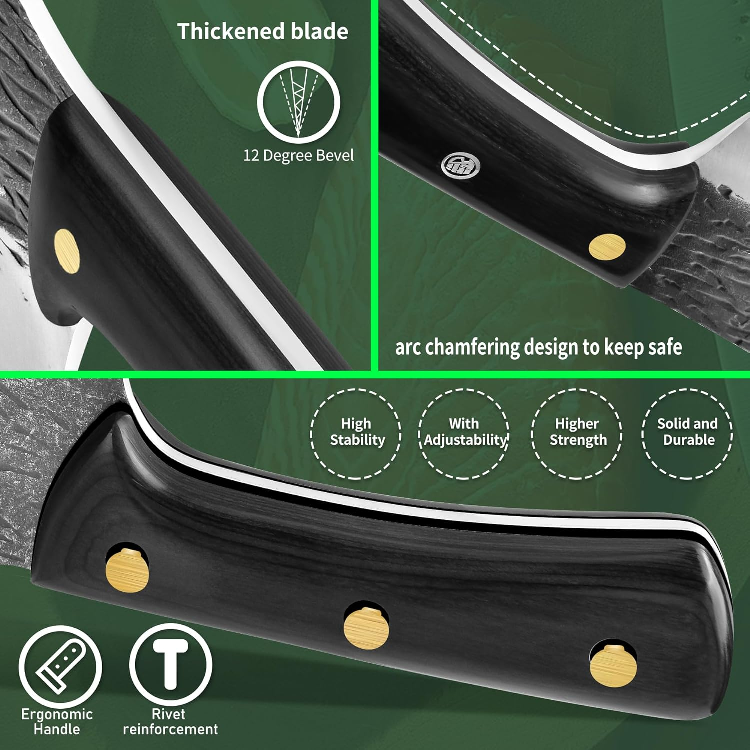 Ridicați experiența dvs. de bucătărie cu cuțitul nostru de măcelar. Acest cuțit de bucătărie sârbesc este larg și robust și poate, fără îndoială, să taie oasele. Cuțitul de măcelar este destul de greu și foarte ascuțit. Se taie printr-o friptură ca prin hârtie. Iar lama curbată a cuțitului de dezosare poate tăia orice fibră și țesut conjunctiv într-un piept de pui dezosat.