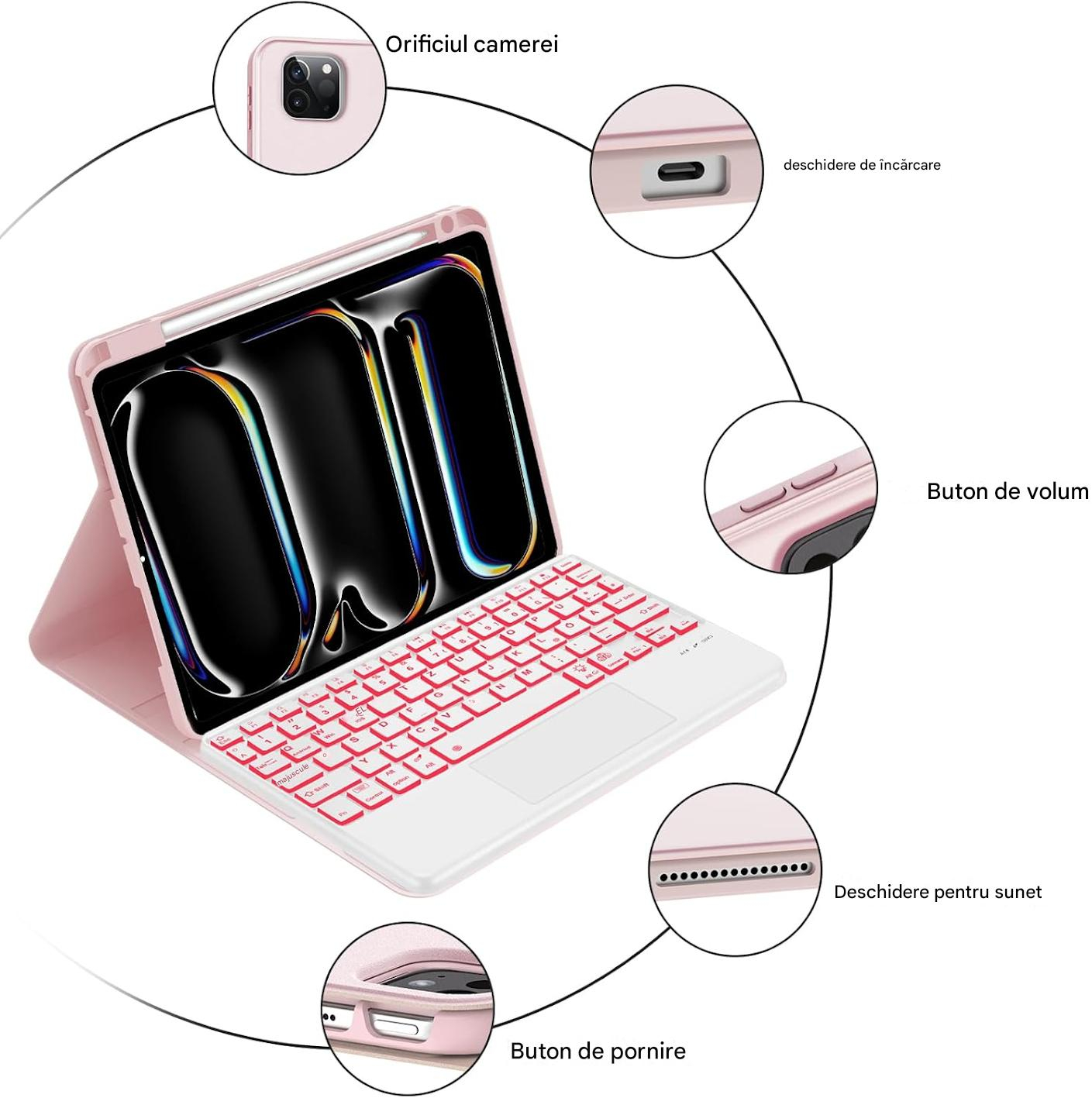 Carcasă cu tastatură iPad Pro 11 inch: compatibil cu iPad Pro 11 inch M4 2024 (numărul modelului: A2836/ A2837/ A2837/ A3006) --- nu este compatibil cu toate celelalte modele iPad. Vă rugăm să verificați numărul de model de pe spatele iPad-ului înainte de cumpărare