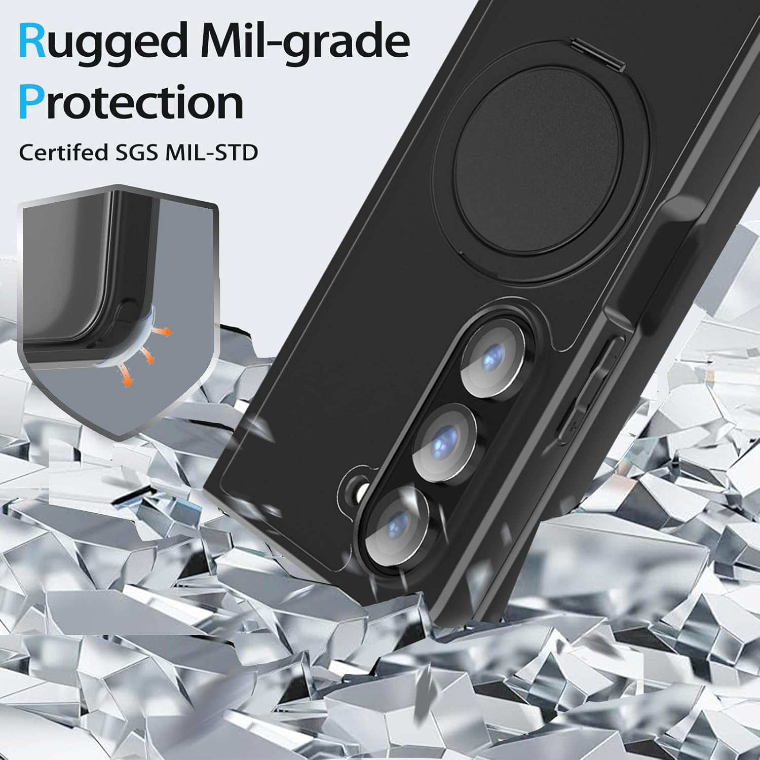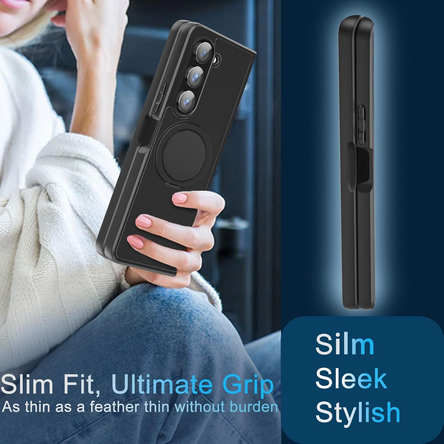 [Susținere magnetică]: Galaxy Z Fold 6 (2024) Mag Cover Case cu suport de suport rotativ pliabil de 360 de grade, oferindu-vă o experiență convenabilă în timp ce jucați jocuri sau vizionați videoclipuri. Carcasă magnetică compatibilă cu încărcarea wireless magnetică, geanta magnetică și suportul magnetic.