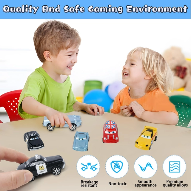 Fiecare masinuta este realizata cu atentie la detalii si este construita dintr-o combinatie de plastic, metal si cauciuc, asigurandu-se astfel ca sunt durabile si rezistente. Functia pull-back and release le permite copiilor sa traga in spate masinutele si apoi sa le elibereze pentru a porni in viteza, incurajand dezvoltarea abilitatilor motorii si a imaginatiei.
