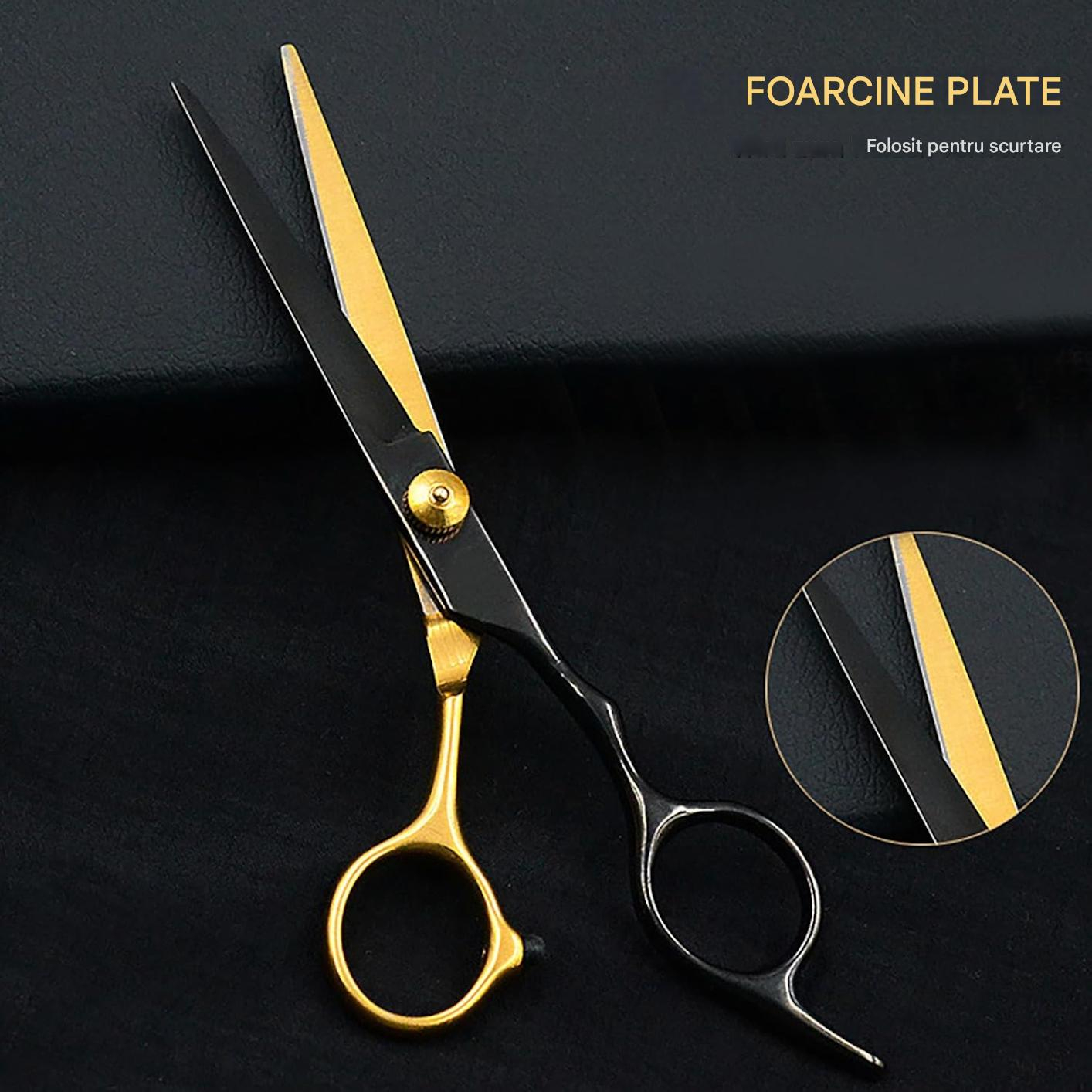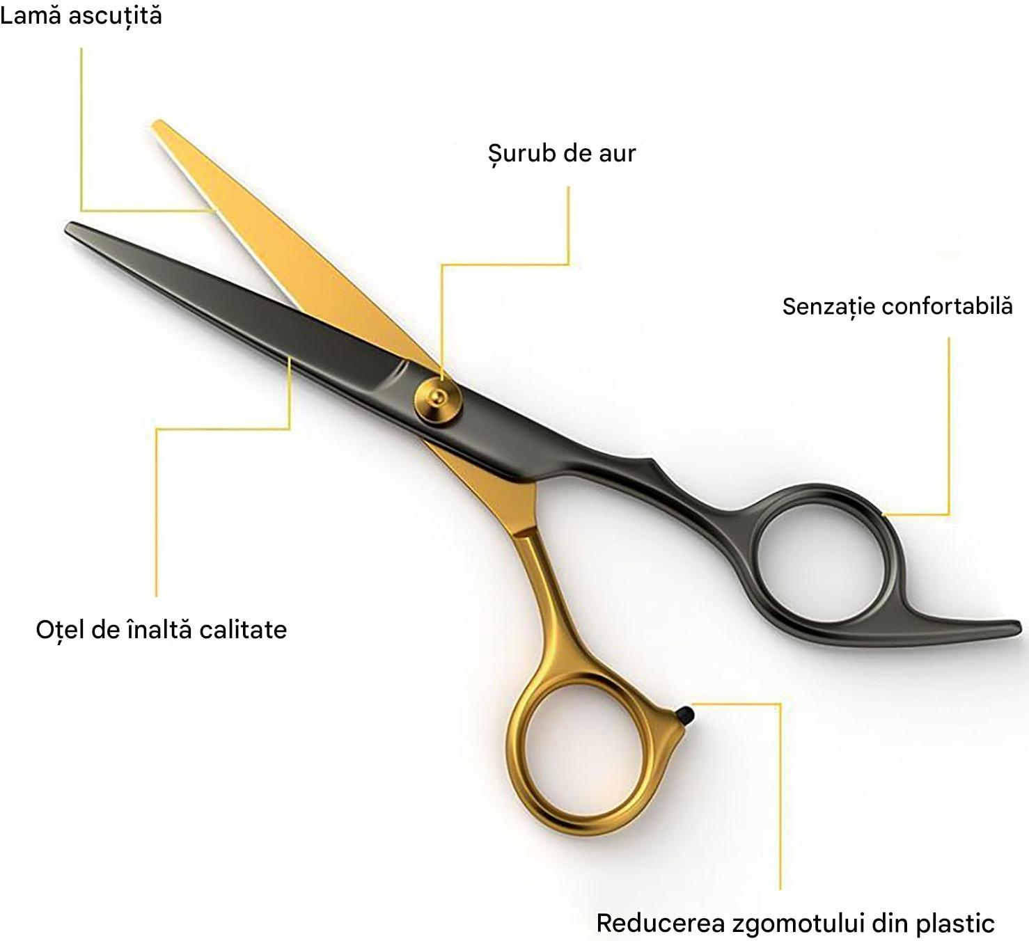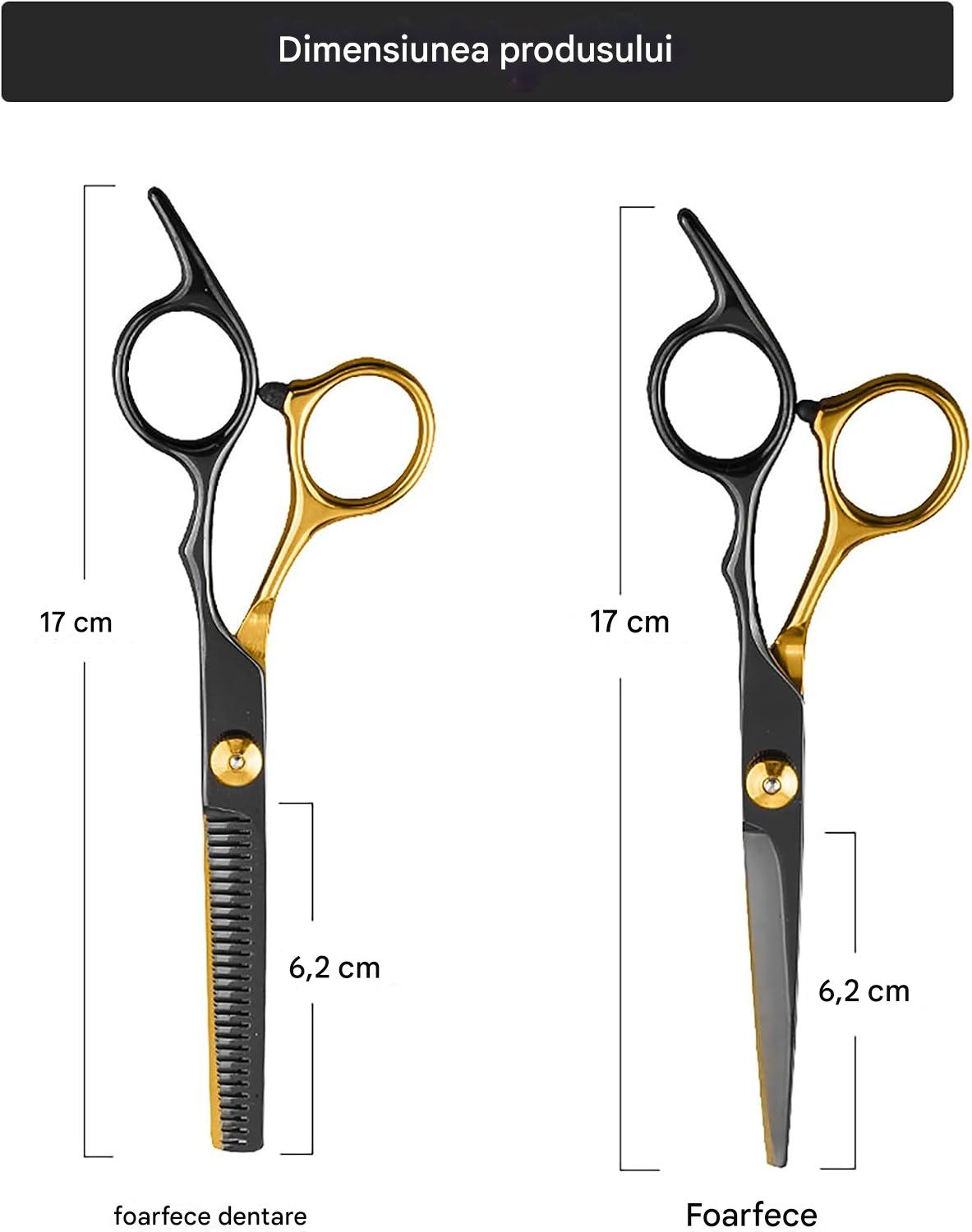 Materiale de înaltă calitate: foarfecele de coafură sunt fabricate din oțel inoxidabil de înaltă calitate. Este rezistent la căldură și la coroziune, rezistent la rugină și colortil. Decupările sunt întărite, iar lamele lustruite manual sunt suficient de ascuțite pentru a tăia părul fără efort și uniform.