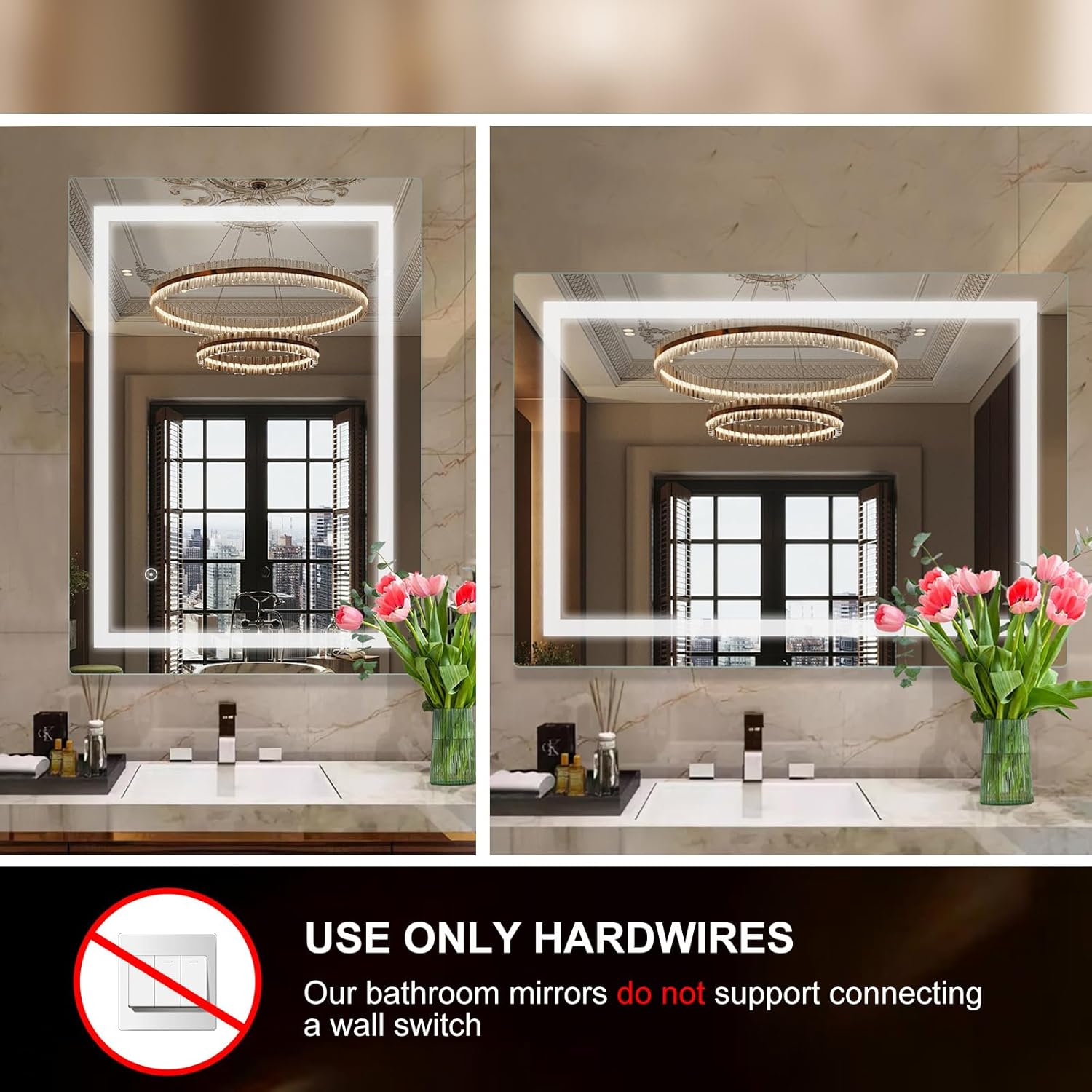 • OALITATE DE ÎNALTĂ Sticlă din oglindă de baie este rezistentă la explozie și rezistentă la apă, cu tehnologie LED modernă de economisire a energiei și consum redus de energie