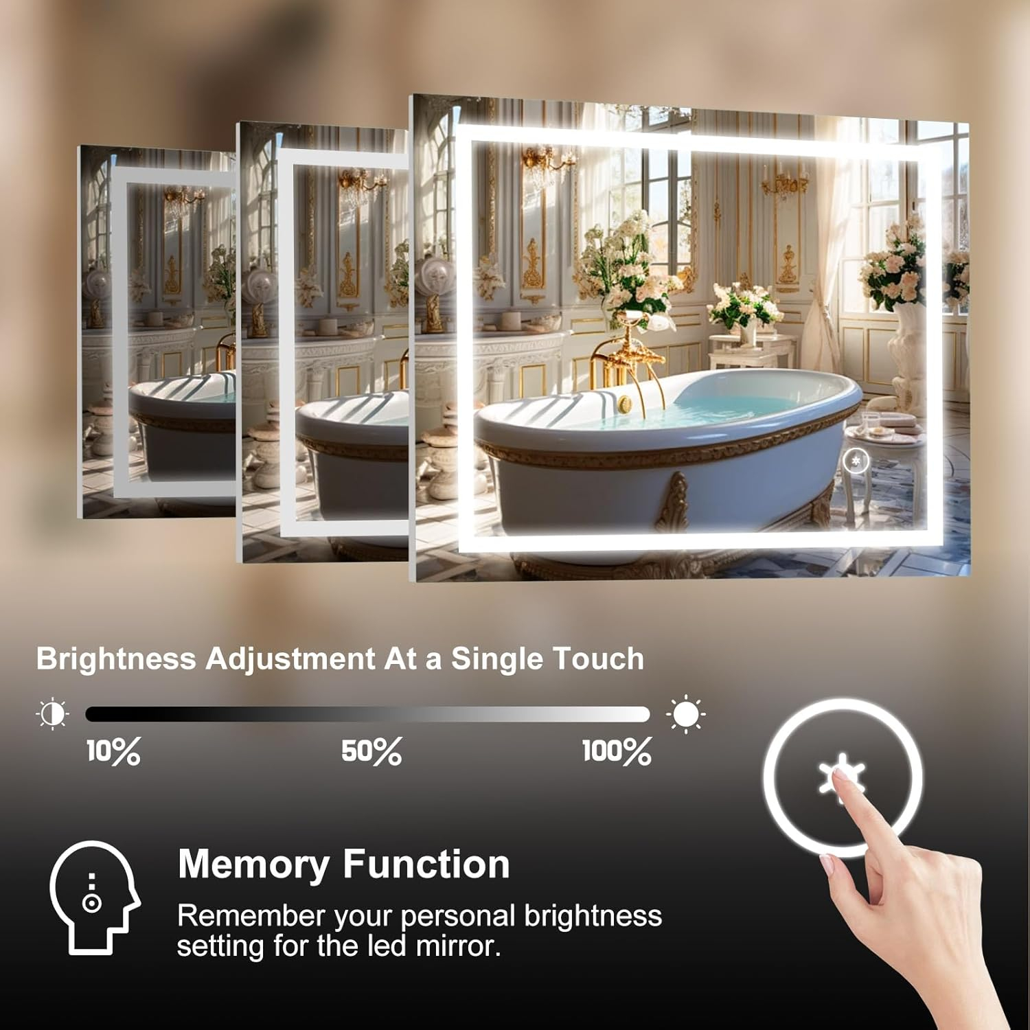 • Operatiune Oglinda de baie suporta operarea tactila si puteti face clic pentru a comuta functia