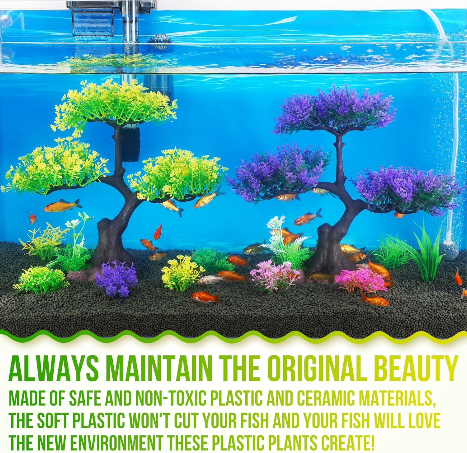Înderătător şi înălţător de înaltă calitate - Aceste decoraţiuni de plante nu se vor estompa şi nici nu vor polua apa, iar frunzele lor sunt suficient de moi ca să nu dăuneze peştilor şi altor animale de companie acvatice. Fiecare plantă din plastic vine cu o bază în care le puteți asigura în nisipul substrat. Acestea sunt potrivite pentru toate acvariile, rezervoarele de pește, apa dulce și apa de mare.