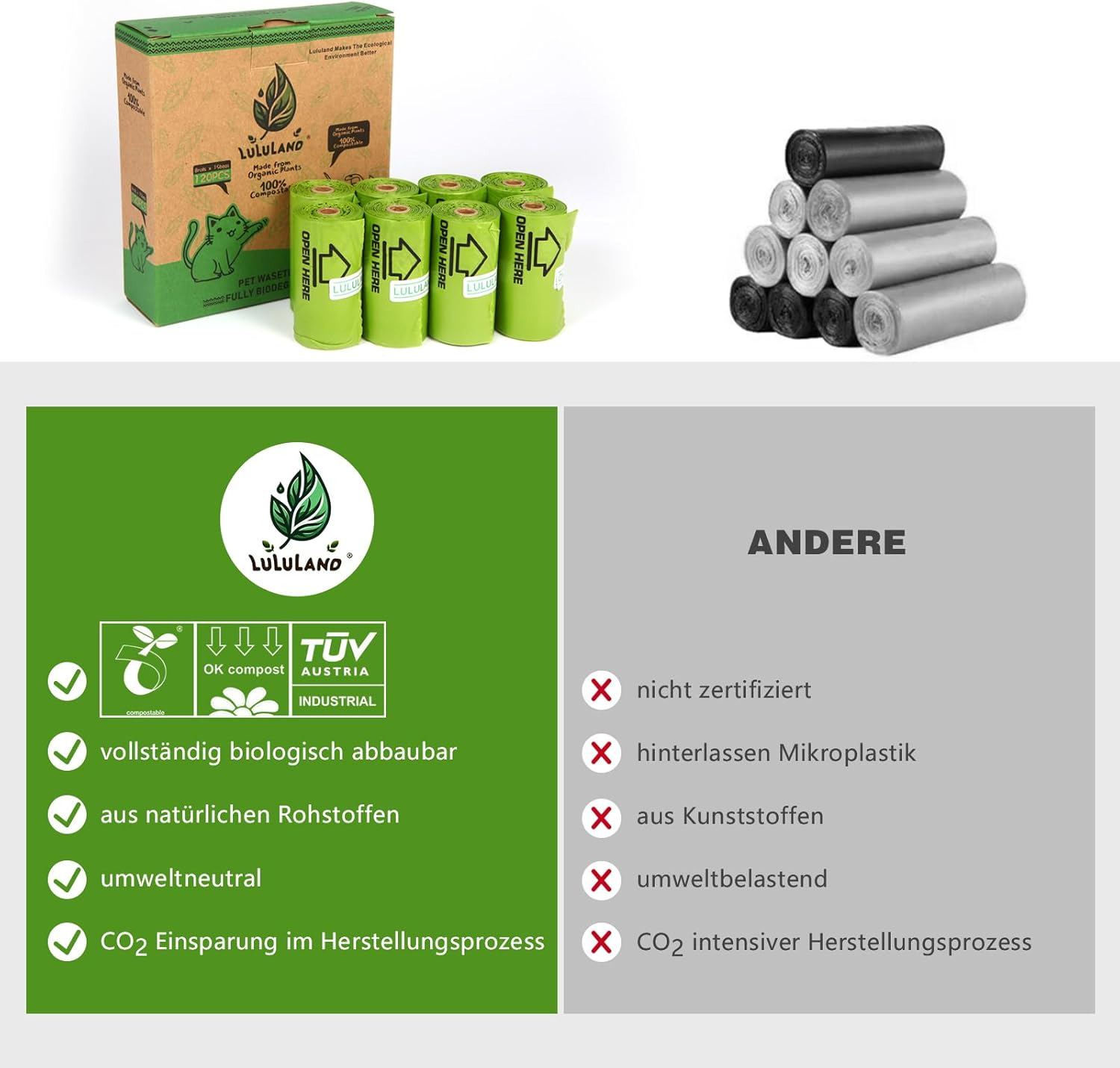 De încredere și igienă: aveți încredere în pungile de deșeuri de câini Lululand pentru a menține curățenia în mediul dvs. Perfect pentru utilizarea în parcuri, trotuare și în timpul călătoriilor cu animale de companie
