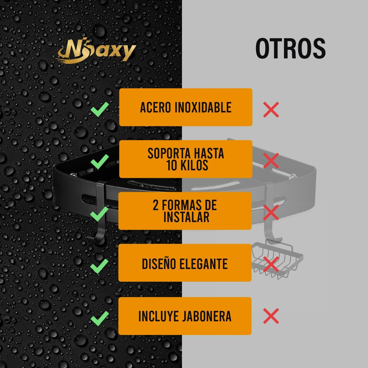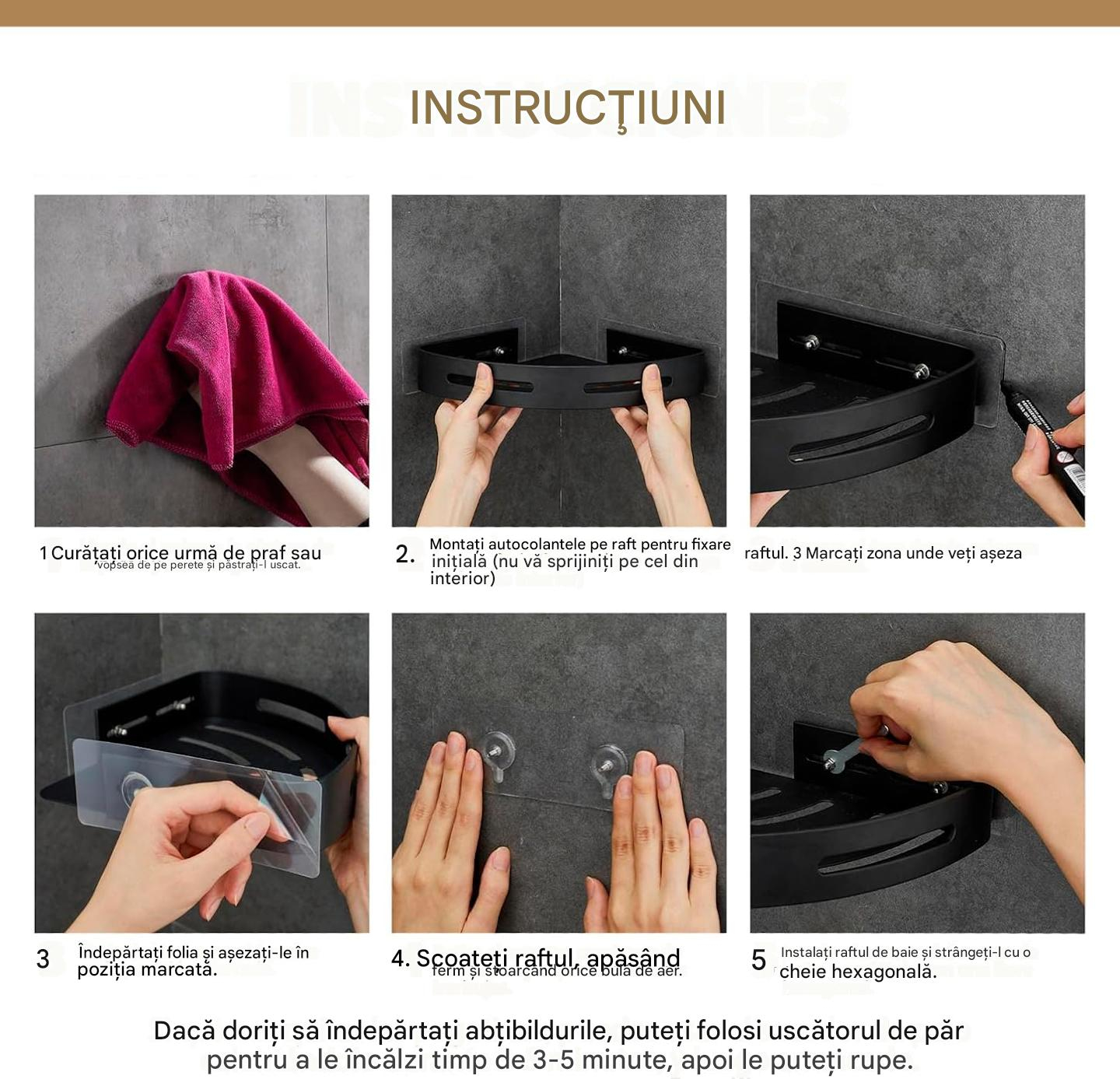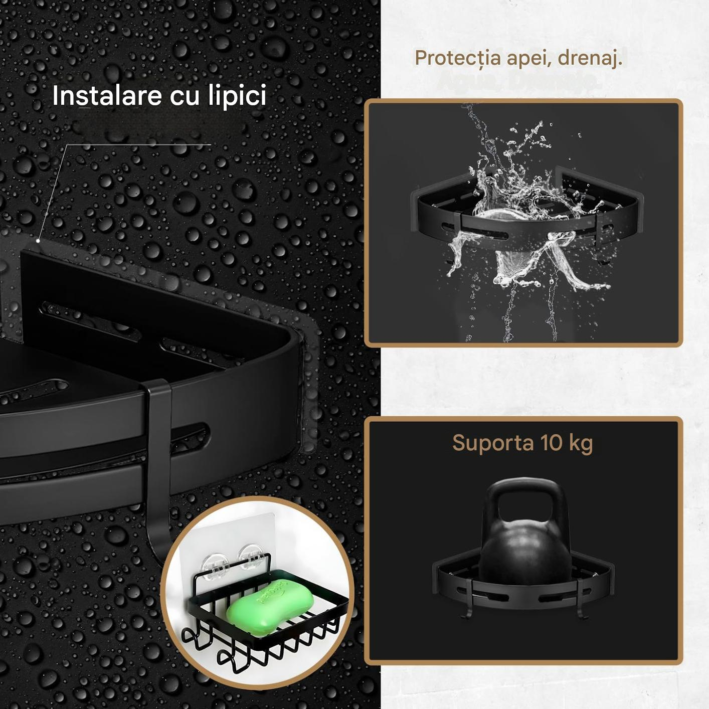 CALITATEA ÎNALTĂ: Fabricat din materiale de înaltă calitate, acest raft de baie fără șurub este rezistent la coroziune și durabil, ideal pentru mediul de baie umed.