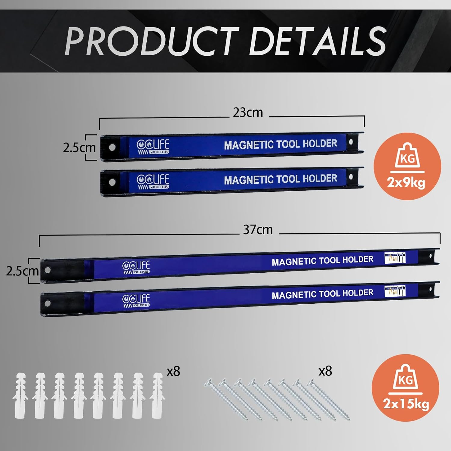 Suporti magnetici 2x23cm, 2x37cm pentru cutite bucatarie, scule, etc, set 4 bucati