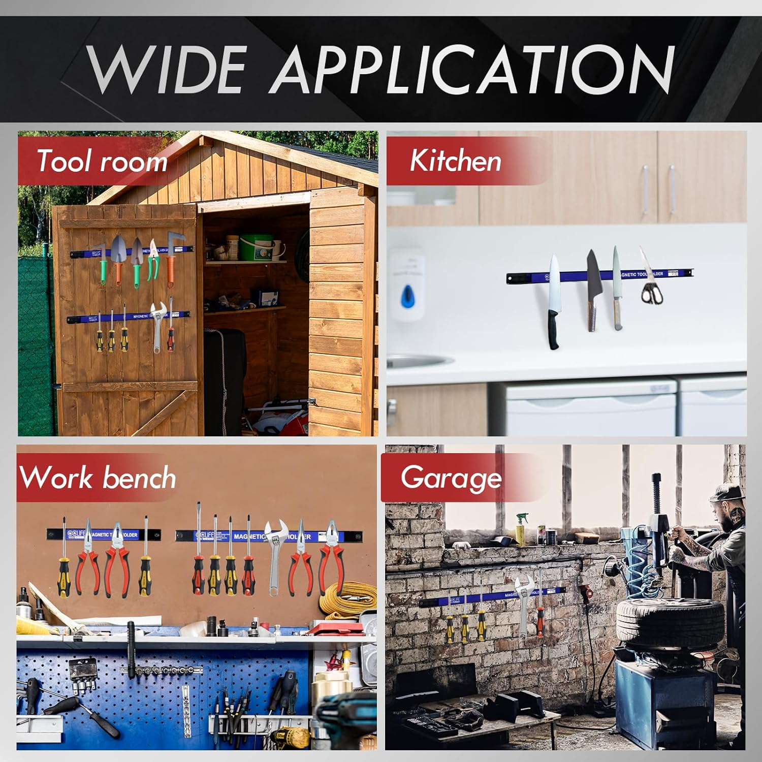 • Aplicație: depozitarea uneltelor, cum ar fi chei, ciocane, șurubelnițe, clești etc.