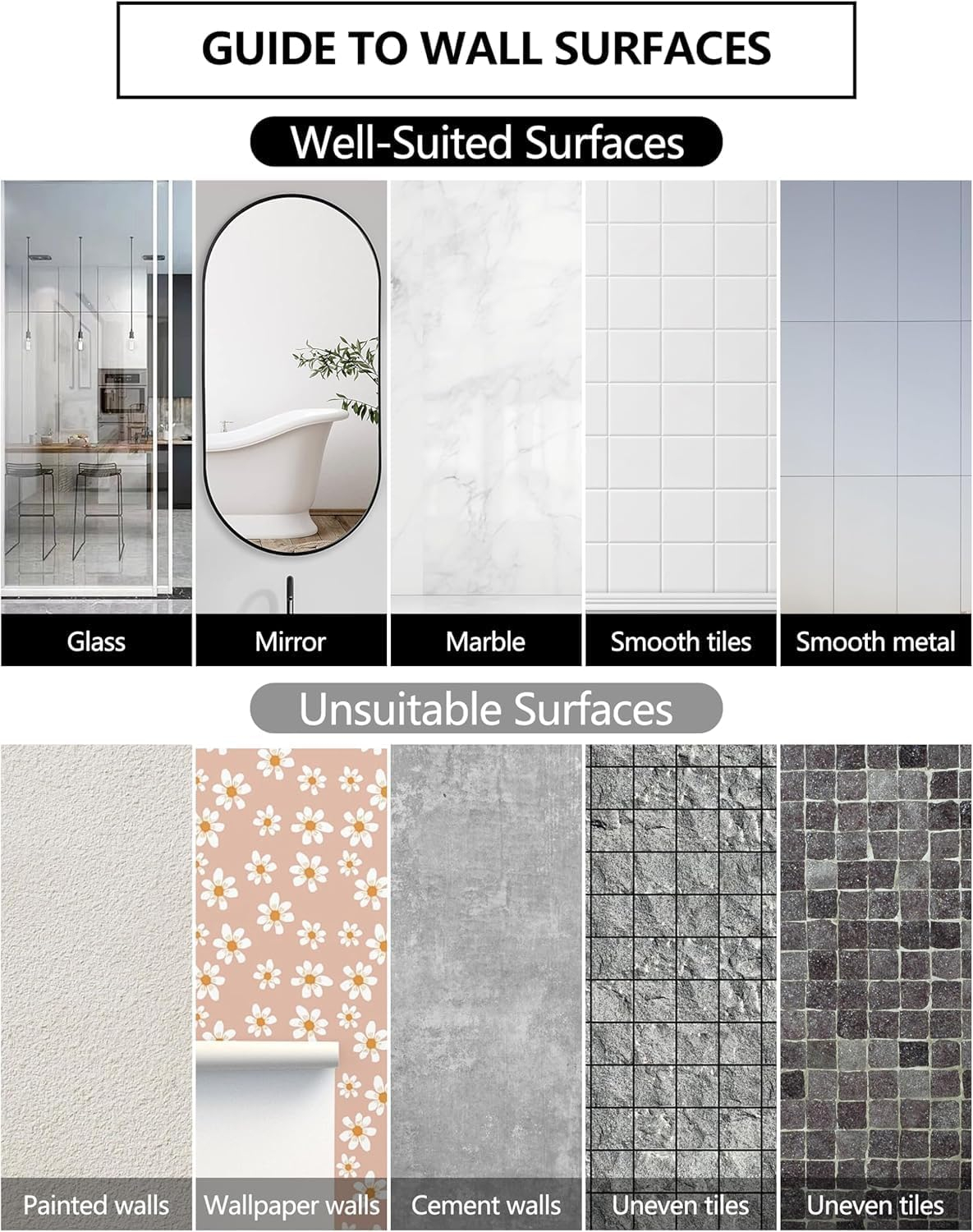 Puterea de aspirație puternică: Cu tehnologia avansată de prindere a vidului, acest cârlig de duș poate conține până la 15lbs. Elixibul ecologic PVC+PU oferă aderență și etanșare excelentă, asigurând o cală sigură și durabilă