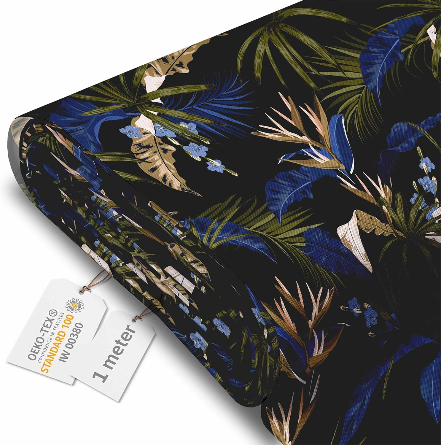 Tesatura impermeabila, material pentru tapiterie de exterior, 160x200 cm, pretabil fata de masa gradina, Exotic Blue Leaves