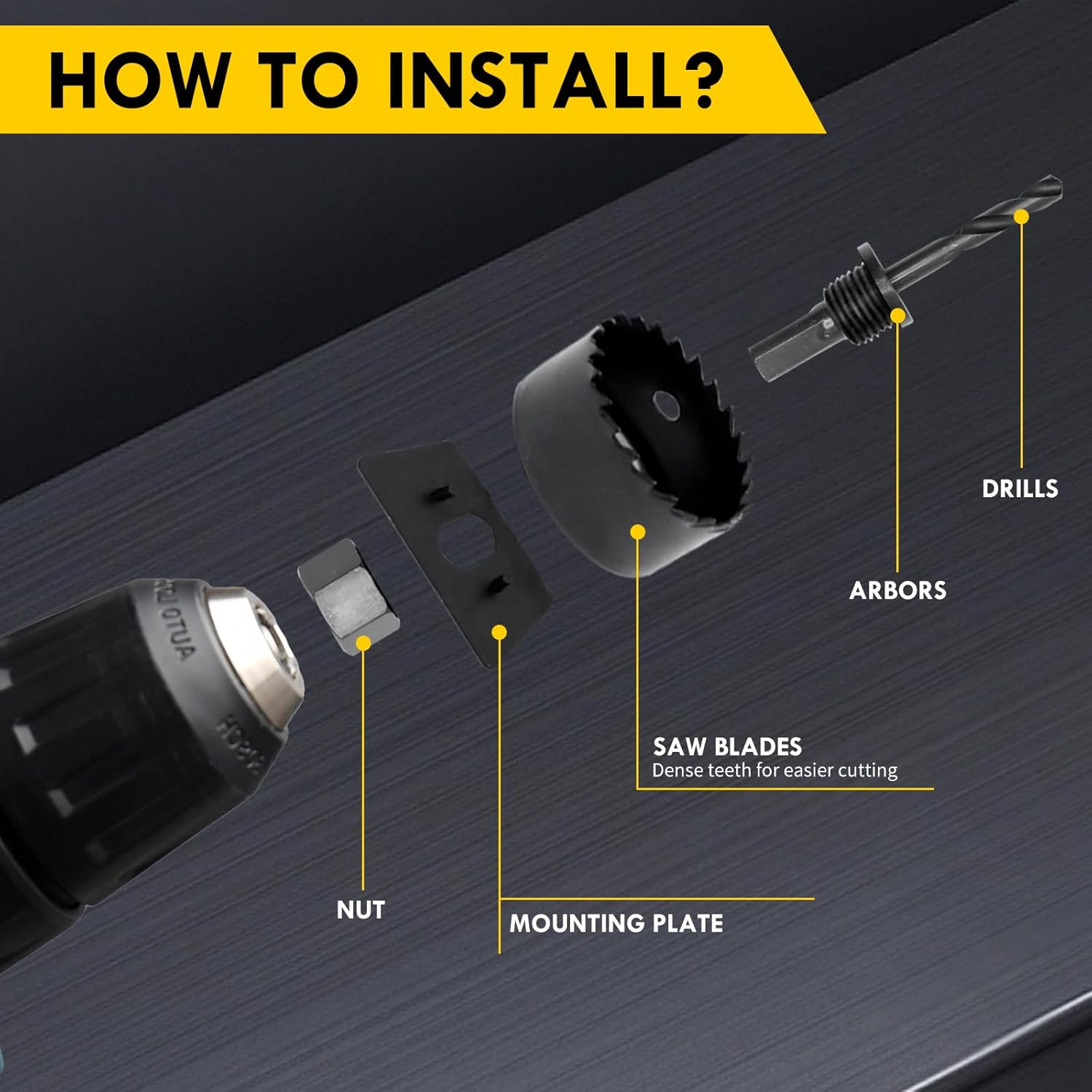 Material de inalta calitate - Fabricat din otel carbon de inalta calitate, cu tratament special pentru caldura si acoperire de suprafata innegrita pentru a preveni rugina pe ferastraul de gauri si pentru a asigura o durata de viata mai lunga.