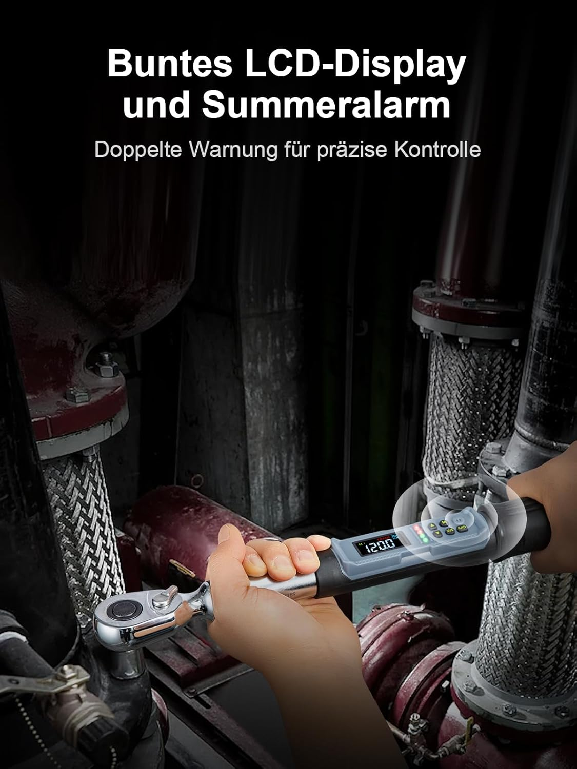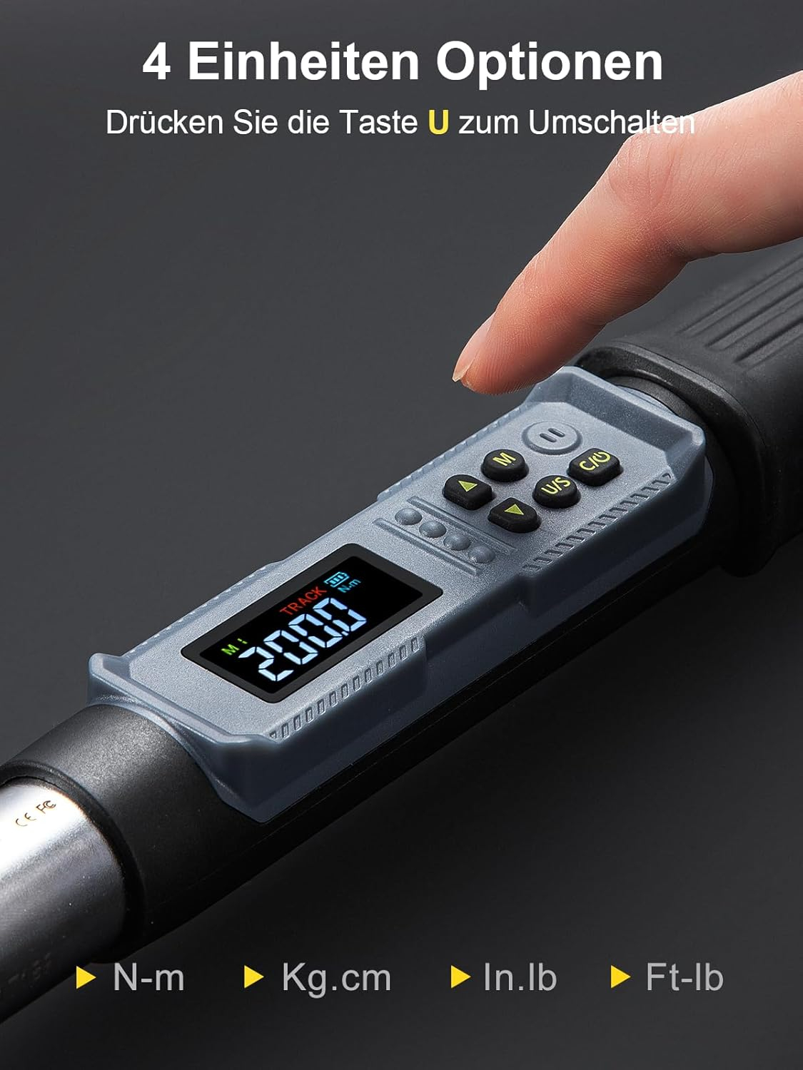 Cheia de măsurare flexibilă: cheia digitală a cuplului permite reglarea precisă a cuplului în 4 unități, kg-cm, Nm, Nm, în lb și ft-lb, echipate cu accesorii interschimbabile, designul universal facilitează gestionarea zonelor de lucru strânse, sarcini fără efort ale diferitelor aplicații