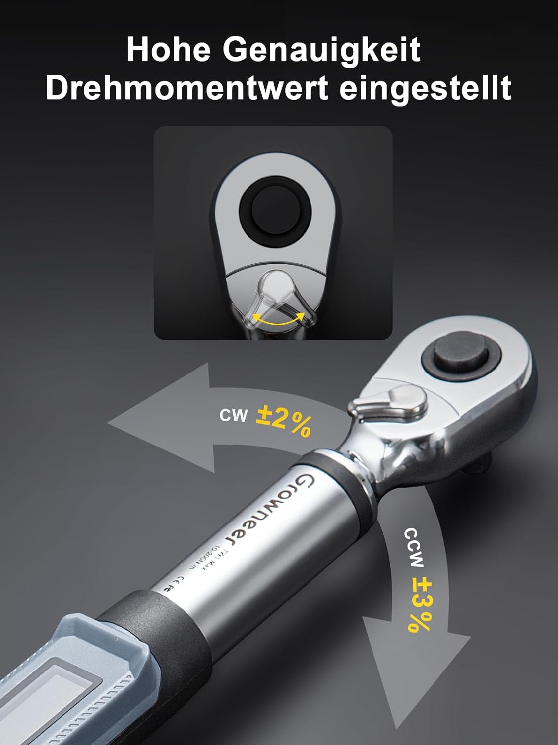 Precizie prin controlul dvs.: GROWNĂR 1/2 inch, cheie de cuplu digital are un afișaj digital fără întârzieri, cu o precizie de ±2%, cu o gamă de 7.38-14,5 ft-lbs/10-200 Nm, iar capul de balet al cuplului adoptă designul de înlocuire rapidă, cu diferite capete de chei de soclu în orice moment, spune goodbay Work