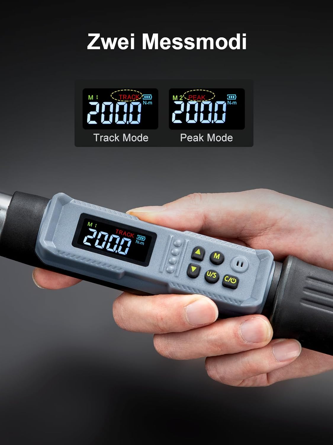 Afișaj inovator și mai multe cerințe: design actualizat al afișajului LCD color, astfel încât să puteți regla și controla cuplul precis prin mediul întunecat. Valoarea sfâșietorului de cuplu este afișată în panoul LED fără întârziere atunci când capul de clichet primește forța externă. Desigur, această cheie de cuplu oferă 6 moduri prestabilite pentru sarcini previzibile și stochează până la 500 de înregistrări. Revizuirea ușoară a datelor istorice