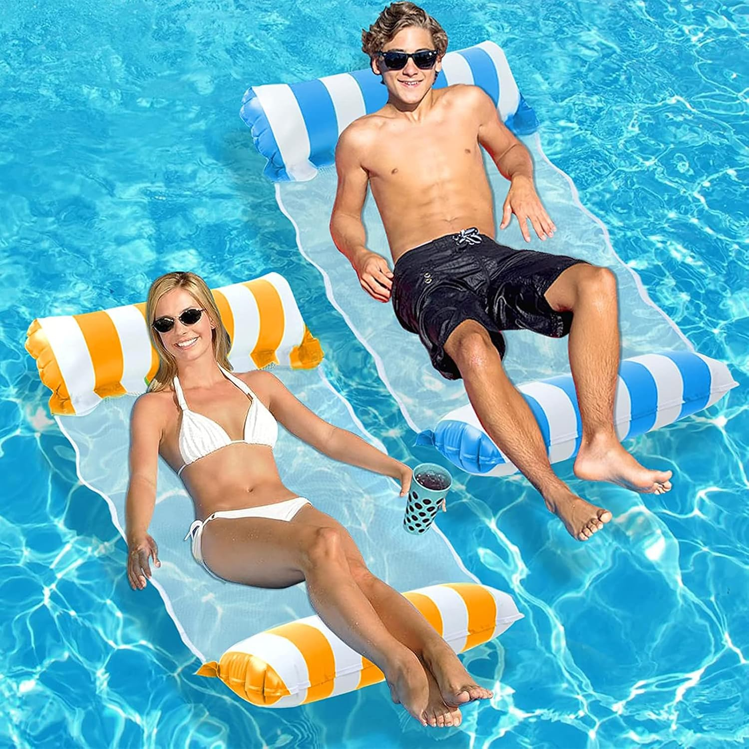 4 în 1 design: salteaua de piscină gonflabilă are funcția 4 în 1. Hamacul poate fi folosit ca hamac, scaun de punte, drifter și metoda scaunelor sportive. Diferite funcții vă permit să vă îmbunătățiți experiența în apă și vă puteți bucura de apă mult mai mult. 2 x Saltele gonflabile de Apă cu pompă de aer, scaun salon, 4 în 1, saltea cu aer pentru piscină, Hamac gonflabil pentru adulți și copii în albastru și portocală