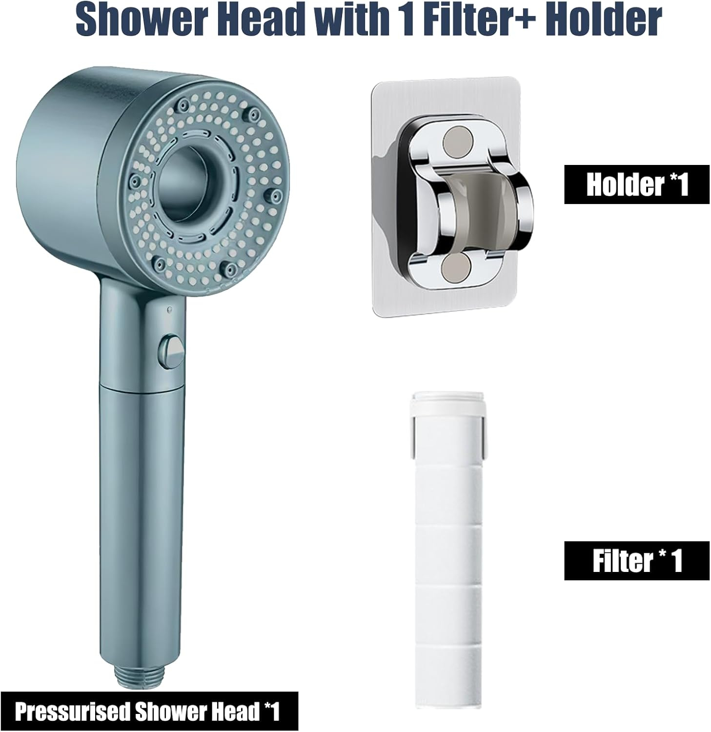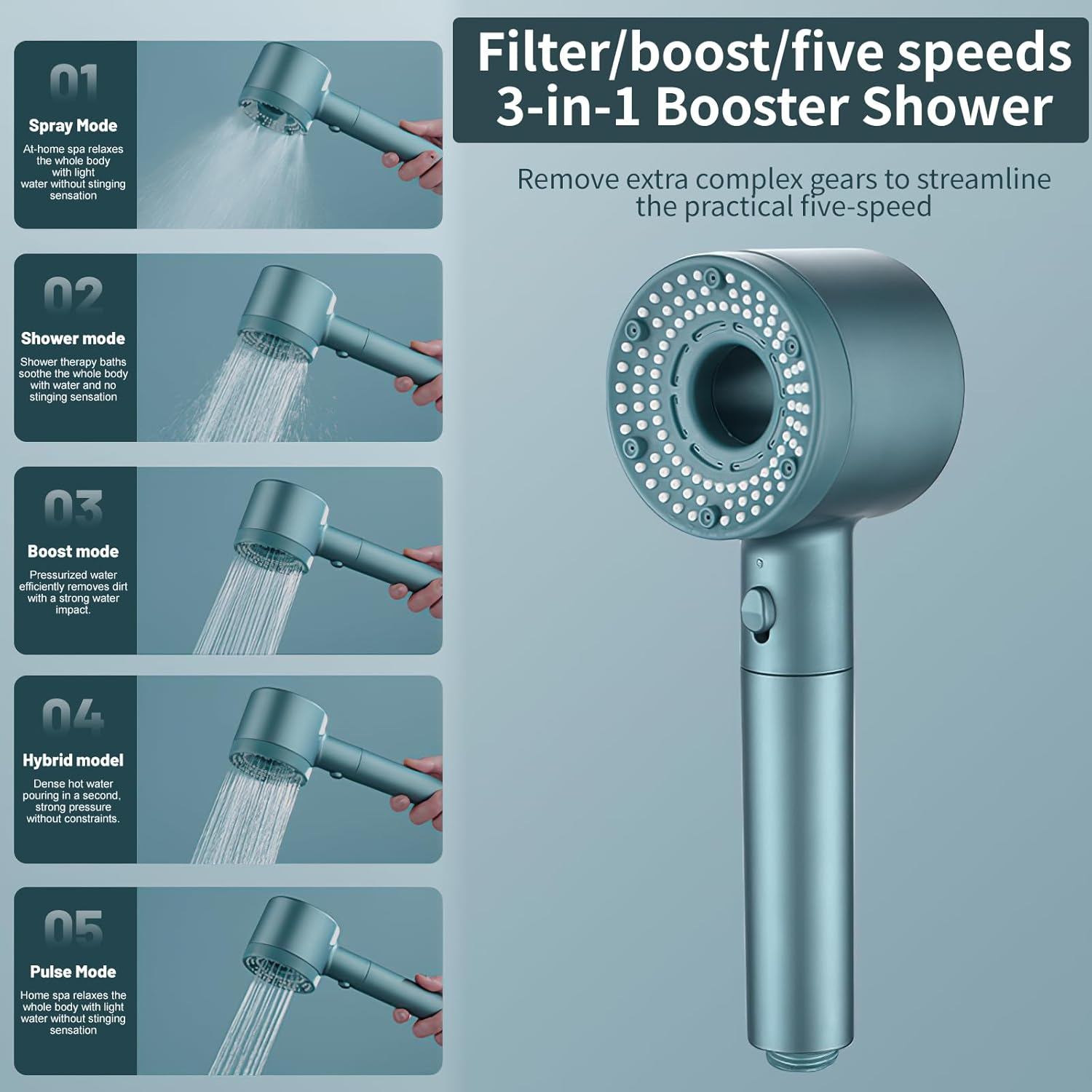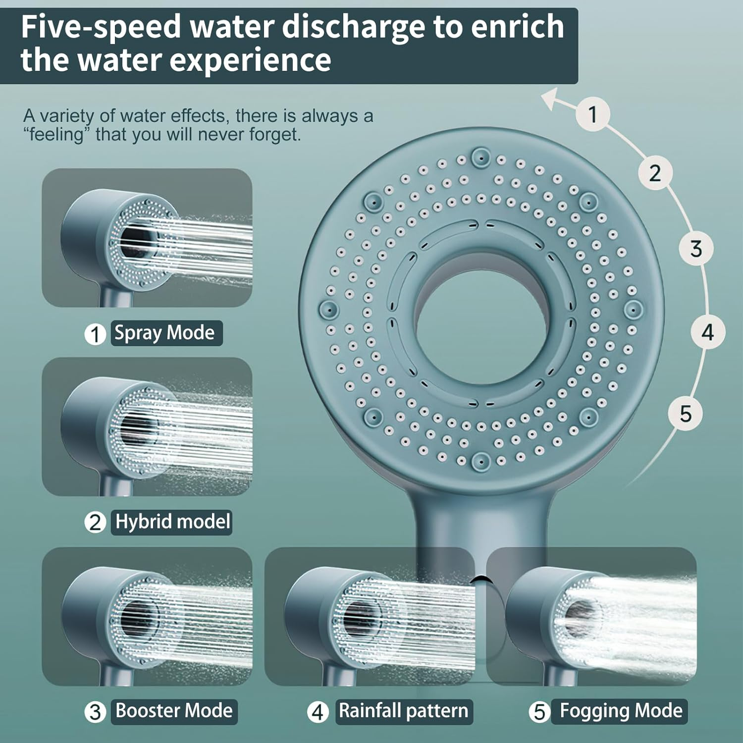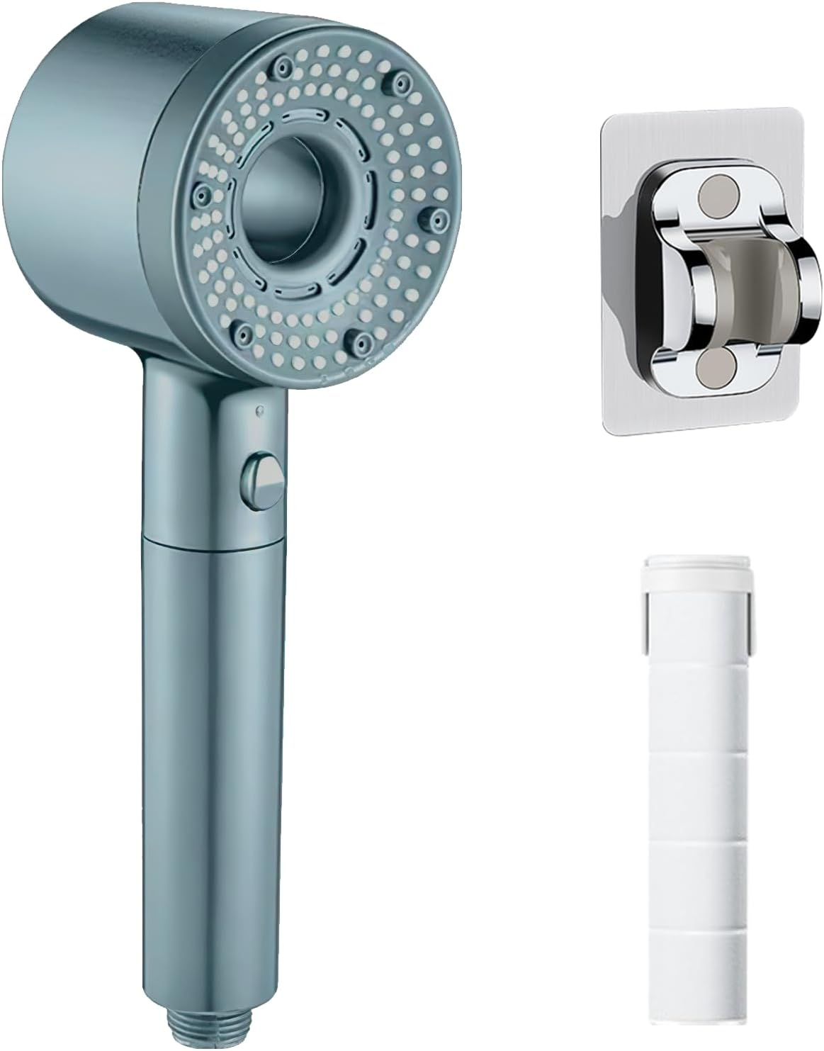 Cap de dus cu 5 moduri, cu filtru si oprire, albastru argintiu