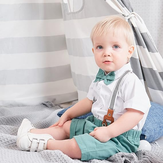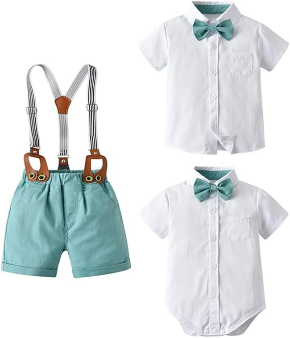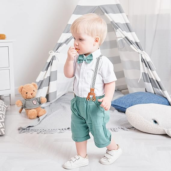 Set de ținute pentru copii, Baby Boys Bowtie Shirt + pantaloni scurți pentru copii mici pentru copii Casual Formal de petrecere de nuntă Smash Slash