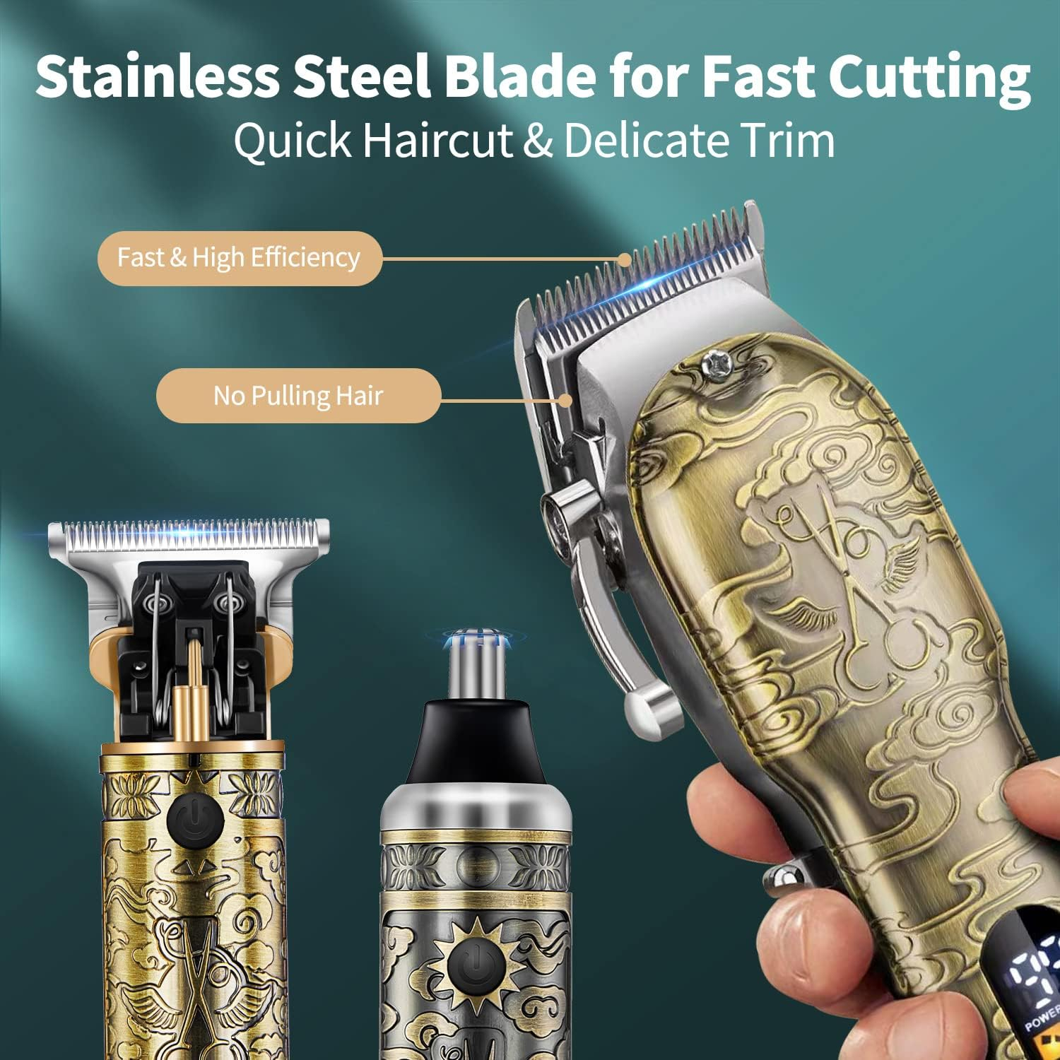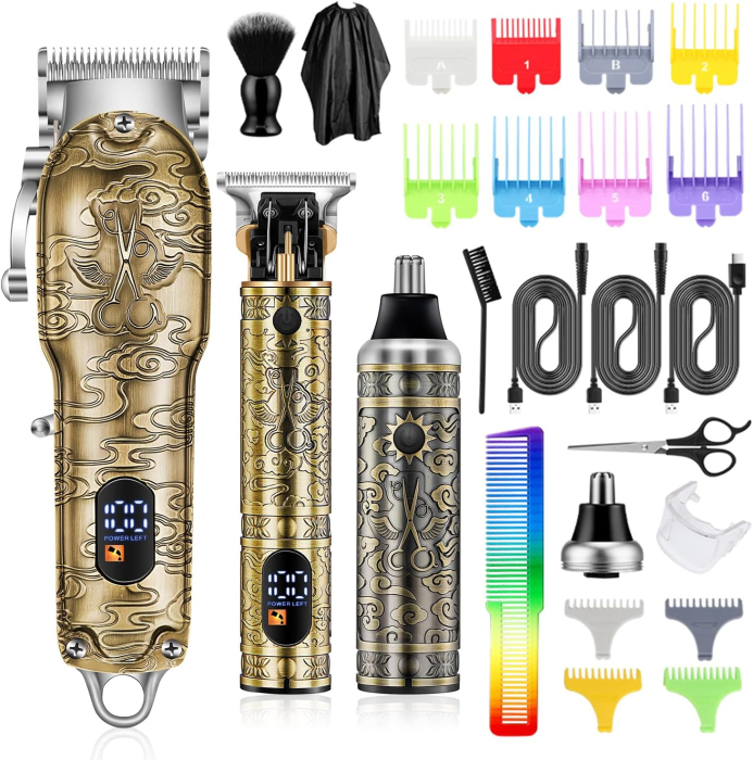 Seturi profesionale de păr fără fir și seturi de timmer: Acest set de tăiere a părului conține tot ce ai nevoie pentru o tunsoare profesională în confortul casei tale. Setul de 3 piese include un aparat de tuns părul, aparatul de tuns barbă și aparatul de tuns părul din nas, precum și accesorii utile, cum ar fi piepteni, perie de curățare, cuțitul de păr din nas, pelerina de coafură, foarfeca, trei cabluri de date USB și multe altele. În plus, setul profesional de aparate de tuns Roziapro este perfect și pentru saloanele de coafură și stiliști.