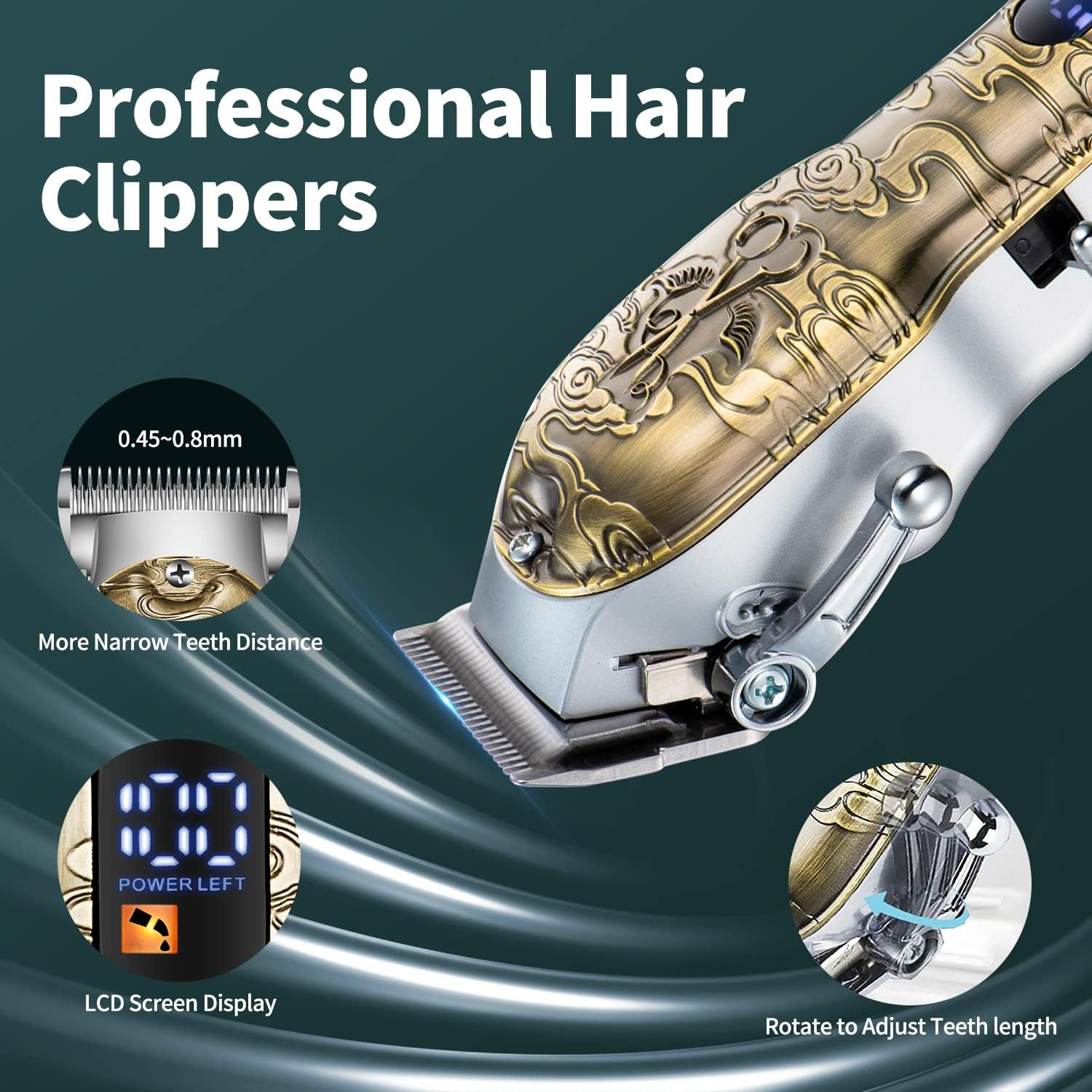 Decuparea părului rentabilă: Decuparea Roziapro este echipată cu piepteni limita în 8 culori diferite și 4 piepteni de ghidare. Kiturile de tunsoare sunt perfecte pentru tăierea precisă, barba, arsurile laterale, părul, parul urechii nasului. În plus, vă vom trimite accesorii precum perii de barbă, foarfece, piepteni și multe altele, astfel încât să puteți proiecta modelul preferat pentru părul dvs. De asemenea, puteți controla cu ușurință lungimea părului și tăiați diferite coafuri prin reglarea barei de taper din partea stângă a aparatului de tuns și diferite tipuri de piepteni de ghidare.
