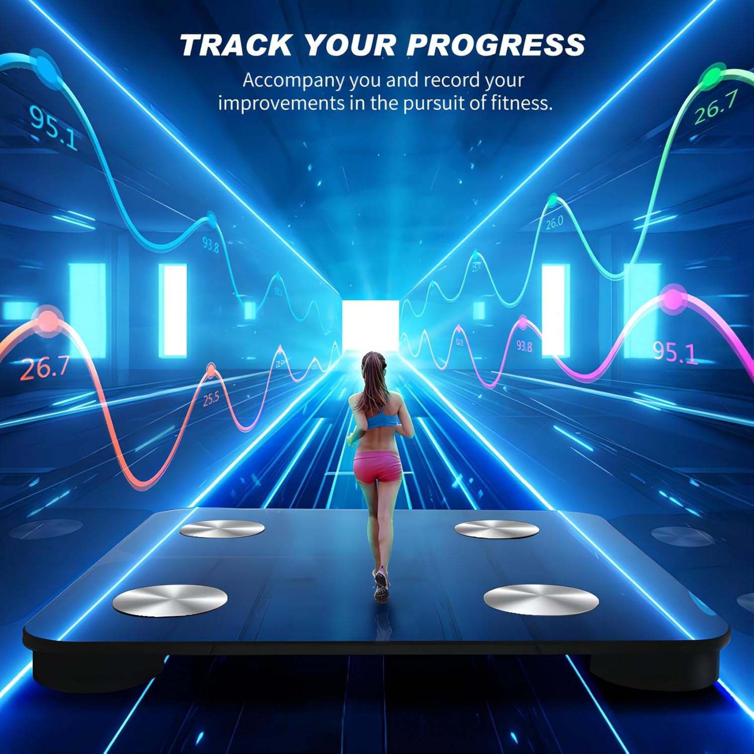Cântar digital pentru grăsimi corporale, masă musculară cu APP 180 kg , Bluetooth, IMC, greutate, apă și masă musculară