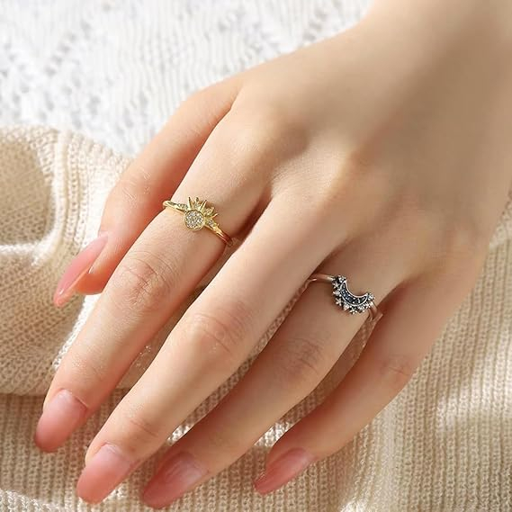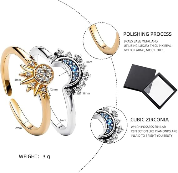 Uniche DesignCelestial Palace Sun and Moon Ring are un design distractiv care vă permite să vă exprimați dragostea într-un mod subtil și semnificativ. Simbolurile frumoase și fermecătoare ale soarelui și lunii adaugă un plus de romantism acestui inel uimitor.