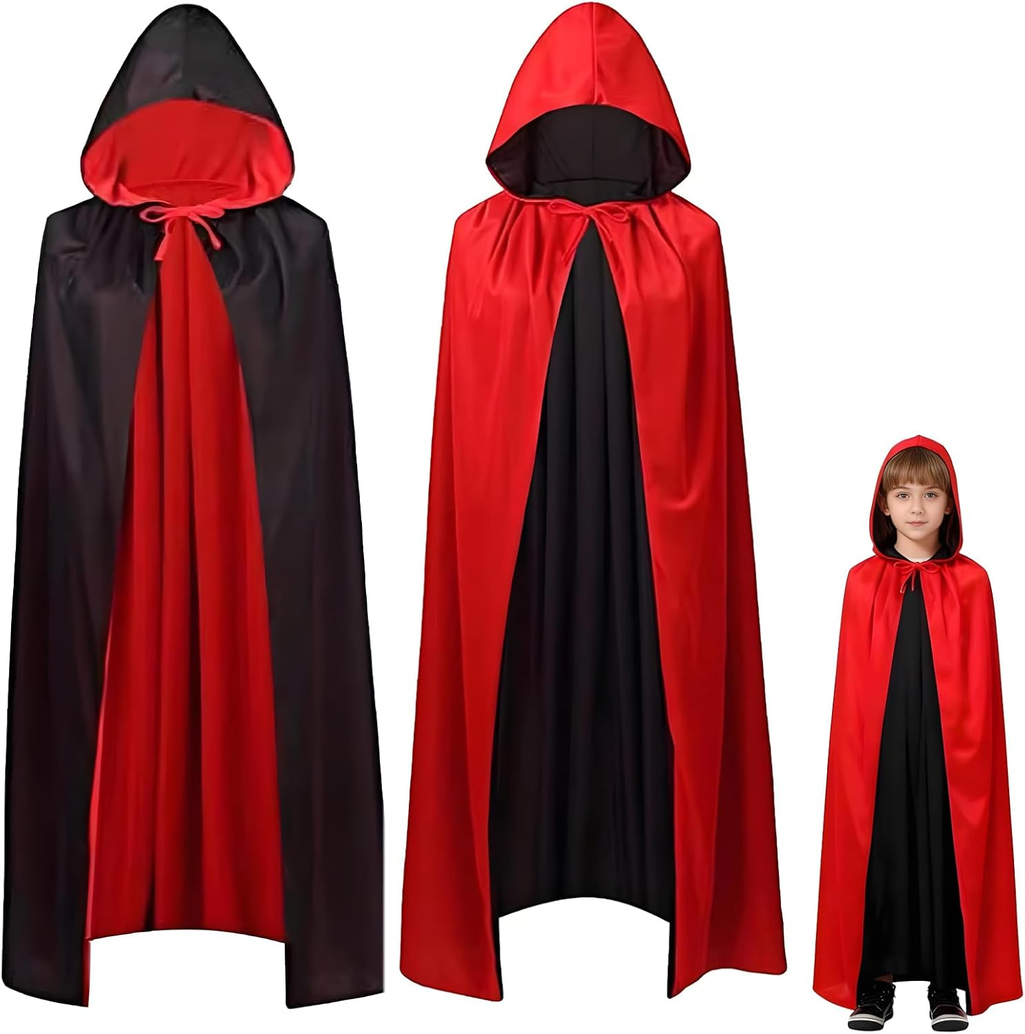 Costum de Halloween: pelerina noastră de vampiri cu două fețe poate fi purtată pe ambele părți - o dată în negru misterios și unul în roșu vibrant pentru a se adapta la orice temă de petrecere.