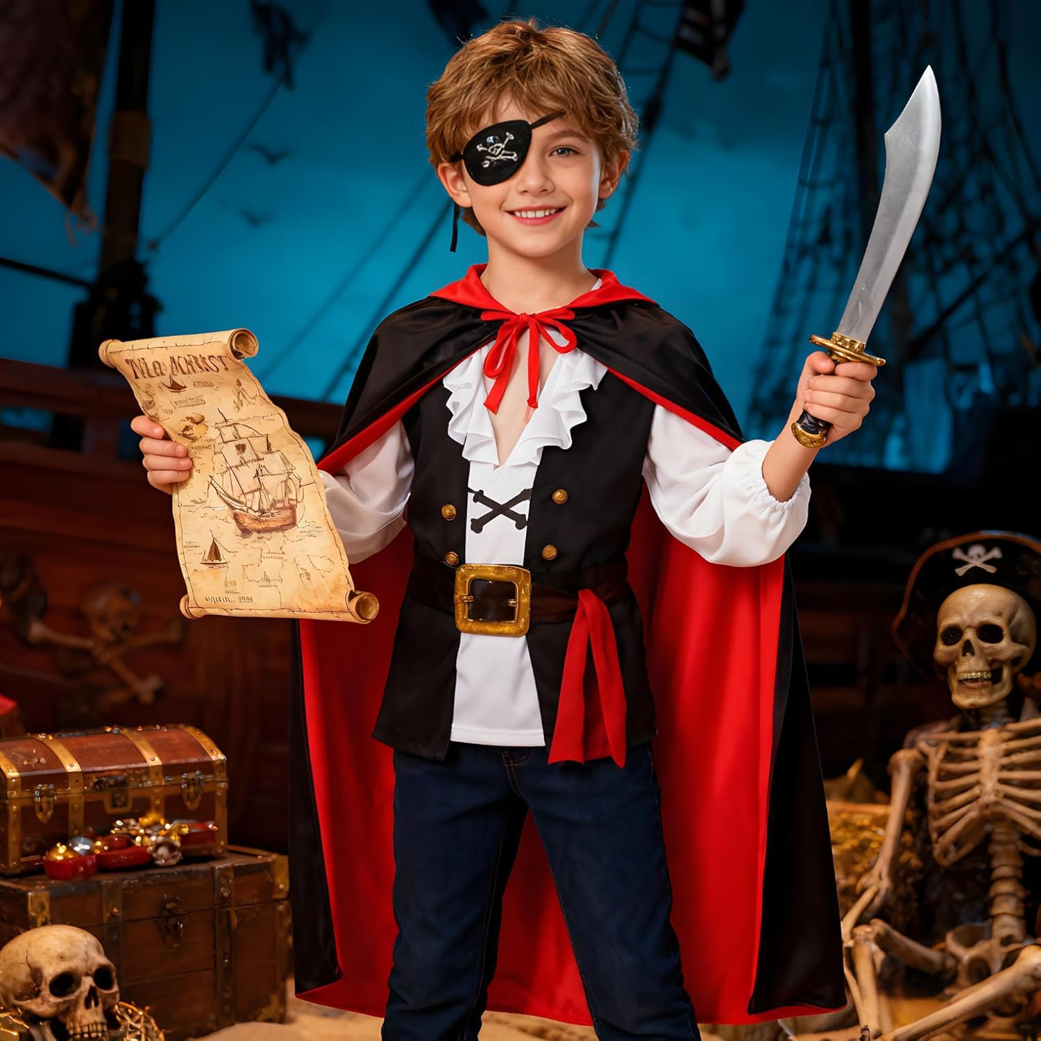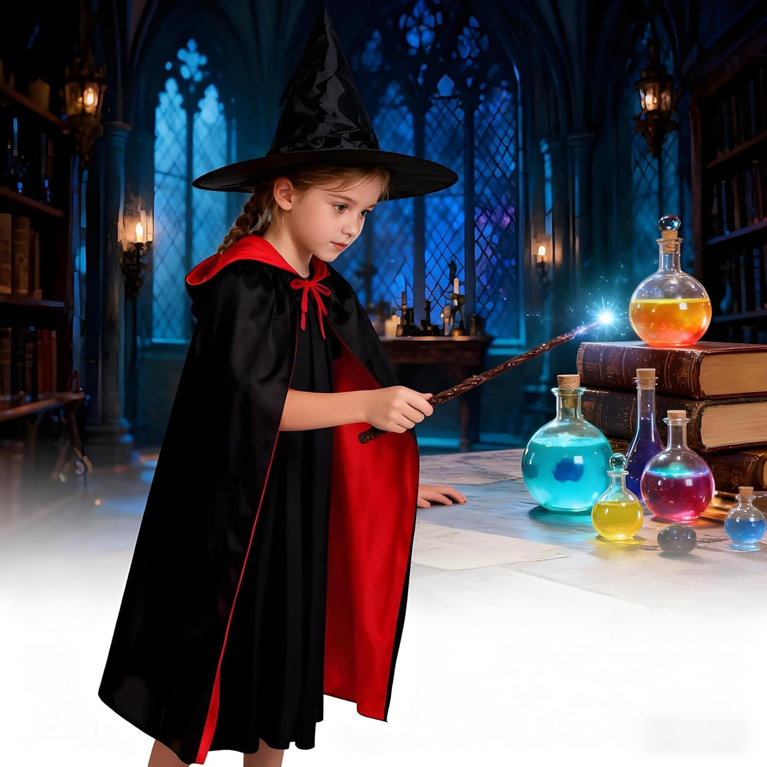 Dimensiune (aprox.) : Lungime 140 cm (fără dimensiunea pălăriei), dimensiunea de pălărie aprox. 20-25cm Această pelerină este potrivită pentru copii cu o înălțime de 140-170 cm. Dimensiunea autocolantului este între 5 și 8 cm. Autocolantele noastre de Halloween sunt realizate din material PVC modernizat și non-trasiune impermeabilă. Dacă puneți accidental autocolantul în locul greșit, nu vă faceți griji, curățați-l și lipiți-l de locul dorit.