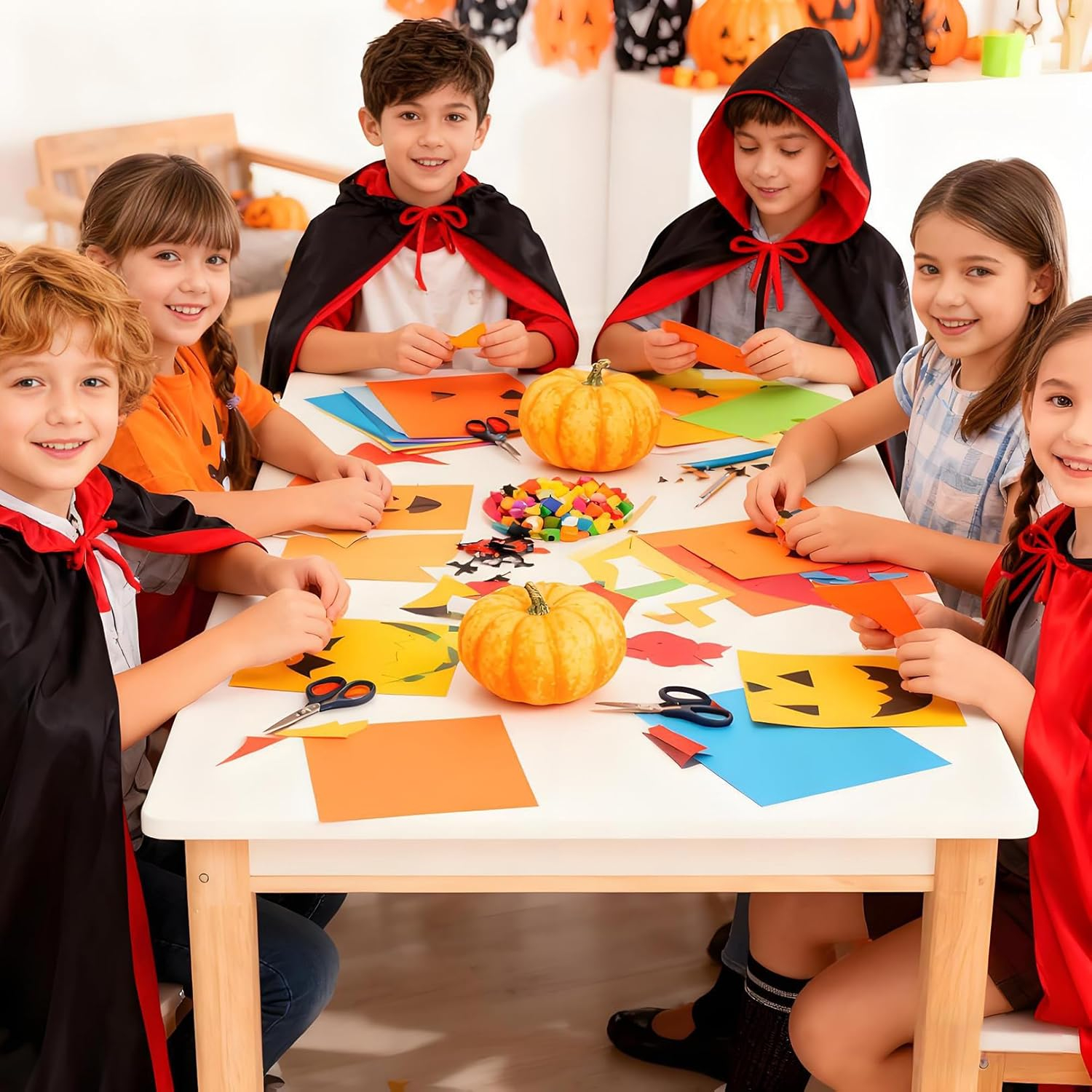 Conținut de pachet: haină cu glugă de Halloween, costum de Halloween copiii este realizat din țesătură de înaltă calitate, caldă și moale. Reutilizabil și perfect pentru a crea o atmosferă de Halloween înfiorătoare și distractivă. Pachetul conține 50 de foi de autocolante de decorare de Halloween cu diferite modele de Halloween, cum ar fi dovleci, fantome, pisici negre, lilieci, pălării de vrăjitoare, case bântuite, păianjeni, cranii etc., care sunt suficiente pentru a fi folosite ca decor de Halloween
