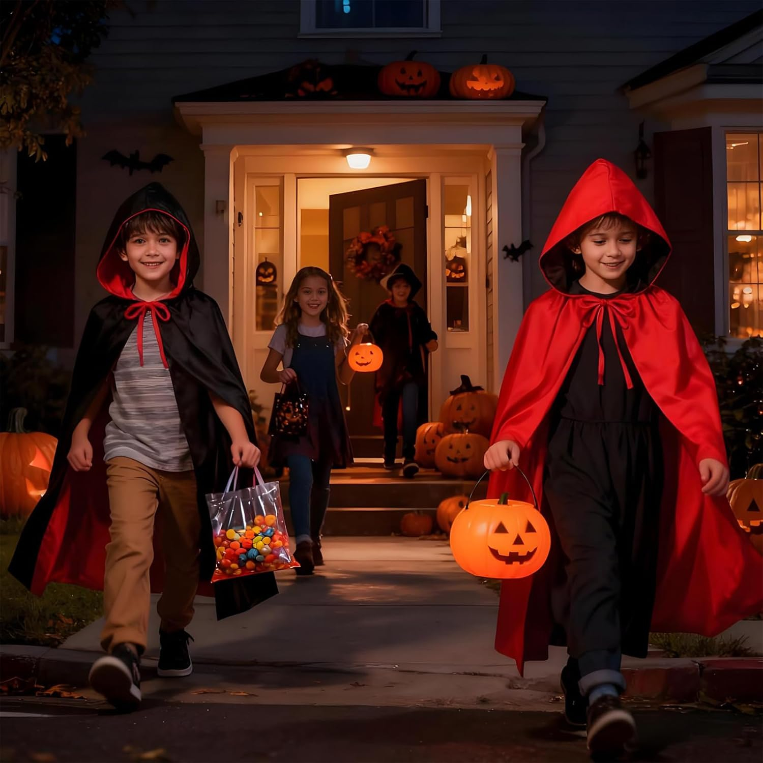 Această pelerină nu este doar un costum grozav de Halloween, cosplay, petrecere, spectacol de teatru și spectacol de scenă, pelerina este versatilă, o puteți purta ca vampir, dracu, cavaler, pelerina, figura de noapte. , moarte, călăul și alte gameplay-uri. Autocolante de Halloween cu modele de imprimare de înaltă rezoluție, culori strălucitoare și frumoase, cadouri perfecte de Halloween pentru copii.