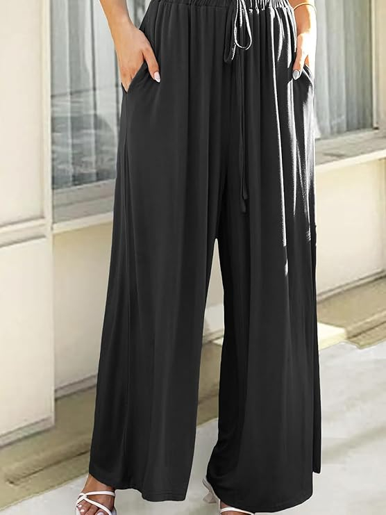 Acest set elegant de casă de vară este realizat din țesătură respirabilă și include o vestă fără mâneci cu bretele reglabile și pantaloni largi cu talie înaltă pentru picioare cu talie elastică și buzunare, ceea ce face ca purtătorul să se potrivească bine și să rămână rece în același timp