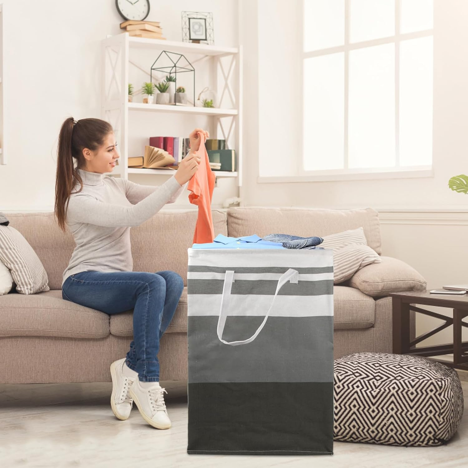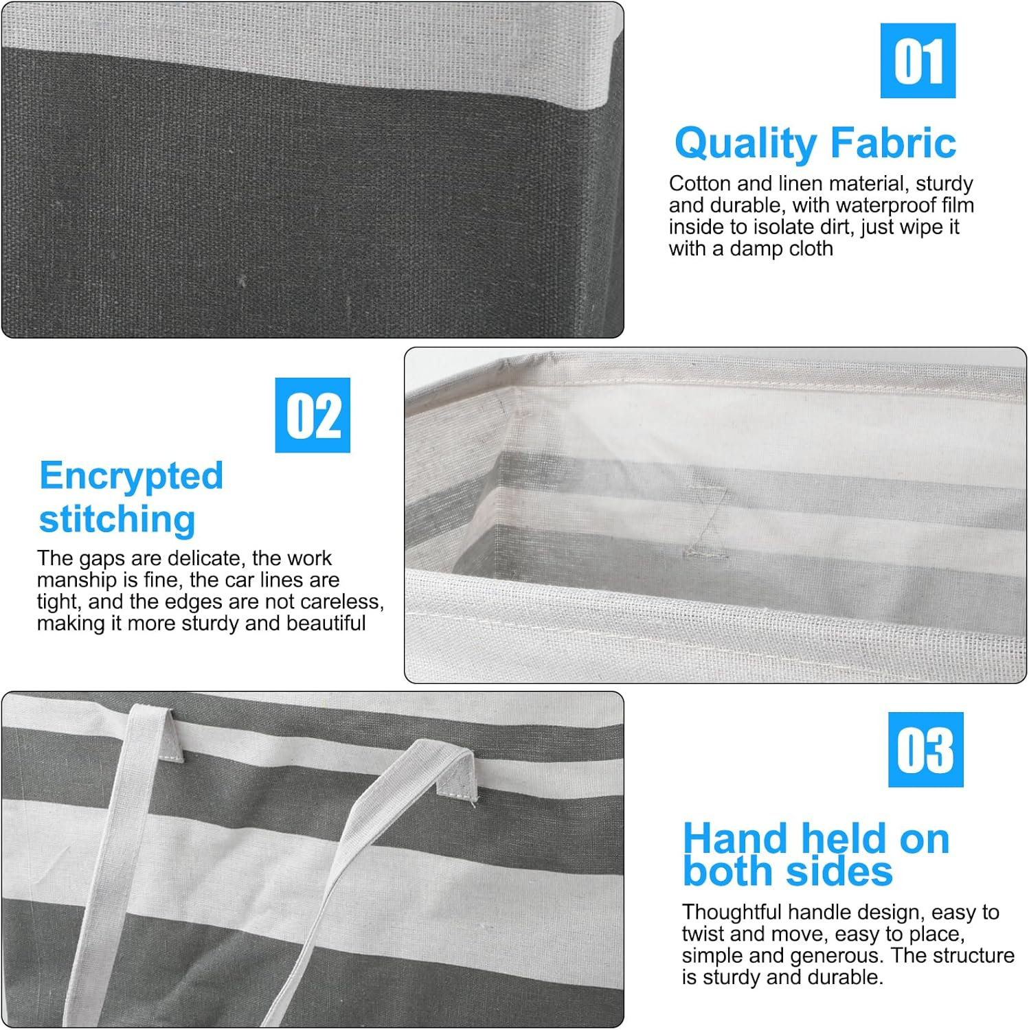 Întreprinderile independente de susținere: Coșurile de spălătorie sunt întărite de cusături durabile pentru a oferi o forță suplimentară împotriva lacrimilor. Și poate sta ferm în poziție verticală chiar și atunci când este gol. Economisește timp, deoarece nu este necesară instalarea.