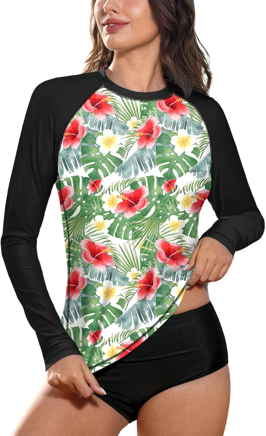 Bluza de inot pentru femei, maneca lunga, respirabila protectie UV, flori L