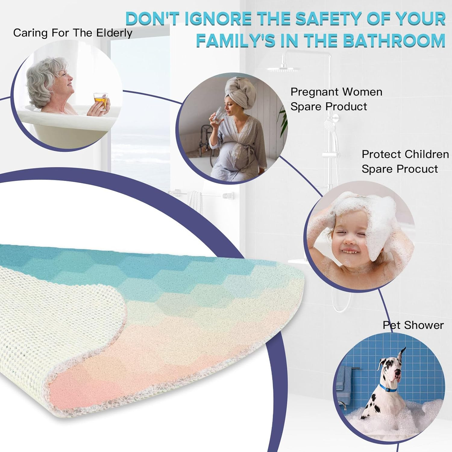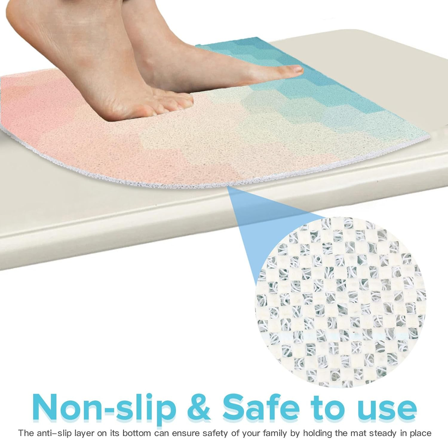 SENZAȚIE DE CULOARE ȘI CONFORTABILĂ - Aspectul colorat atractiv va crește dorințele de duș, va atrage atacțiunile oamenilor și va adăuga peisaje frumoase în baia dvs. Suprafața texturată moale de loofah, de grosime ideală, face ca această covorașă de duș anti mucegai să fie perfectă pentru dușul desculț. Pe lângă faptul că este departe de podeaua dură, rece și oferind suport cald și confortabil corpului, acest covor de baie viu colorat masează și exfoliază ușor picioarele.