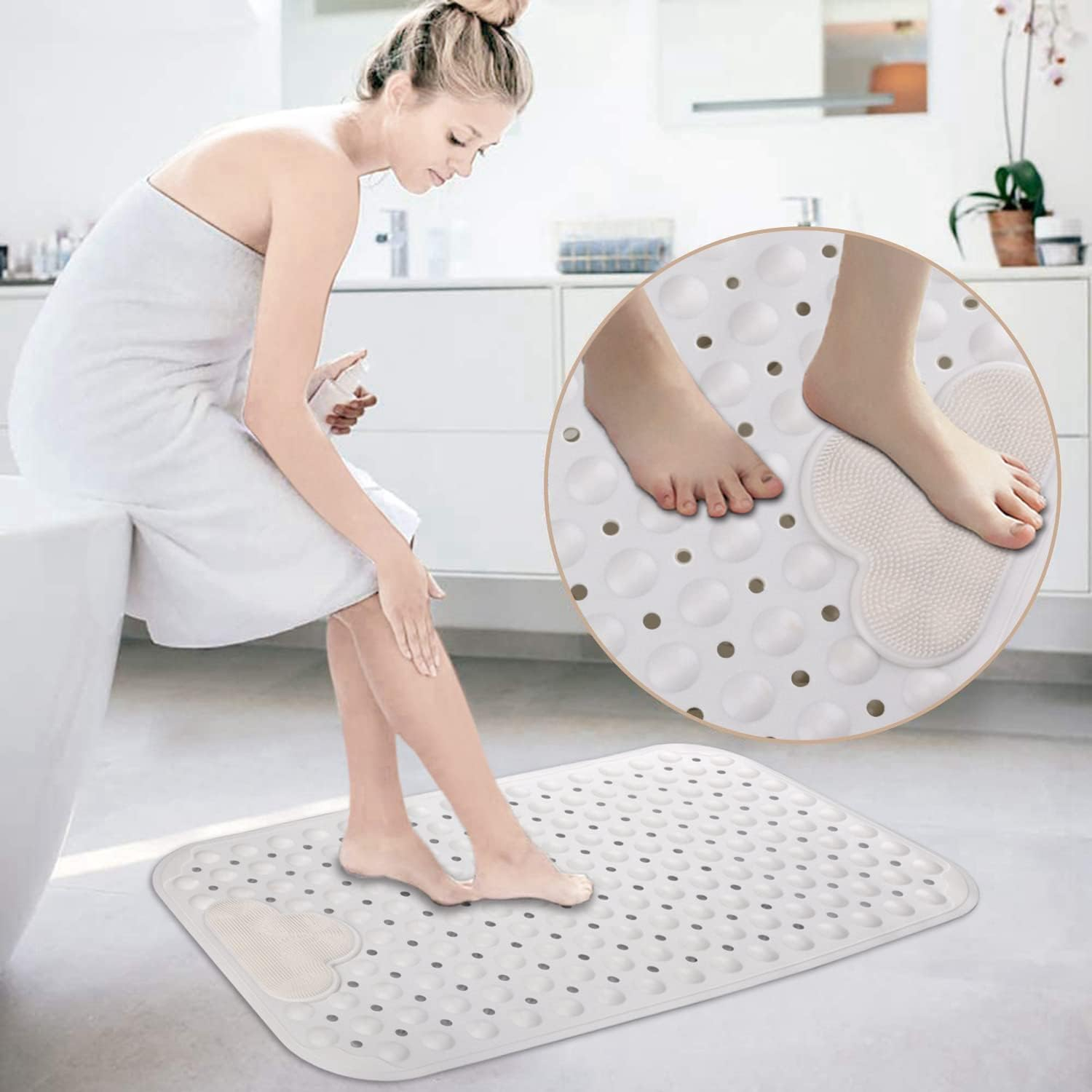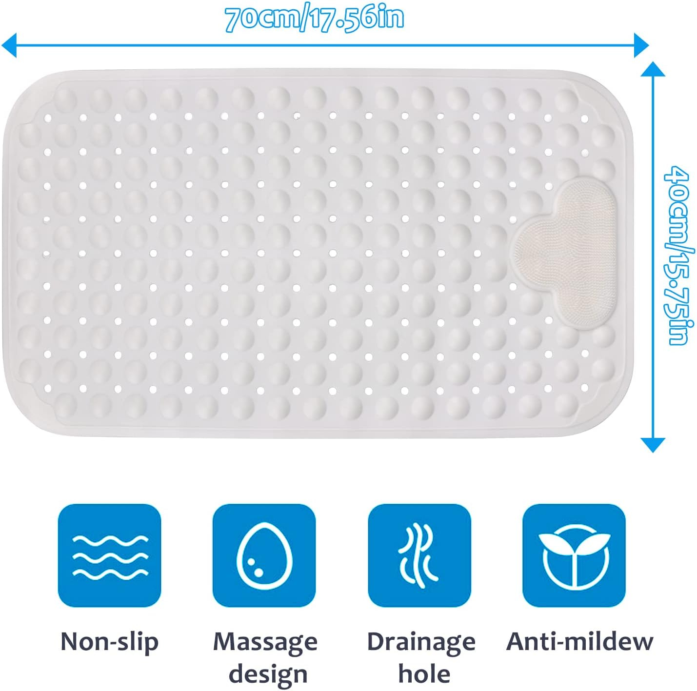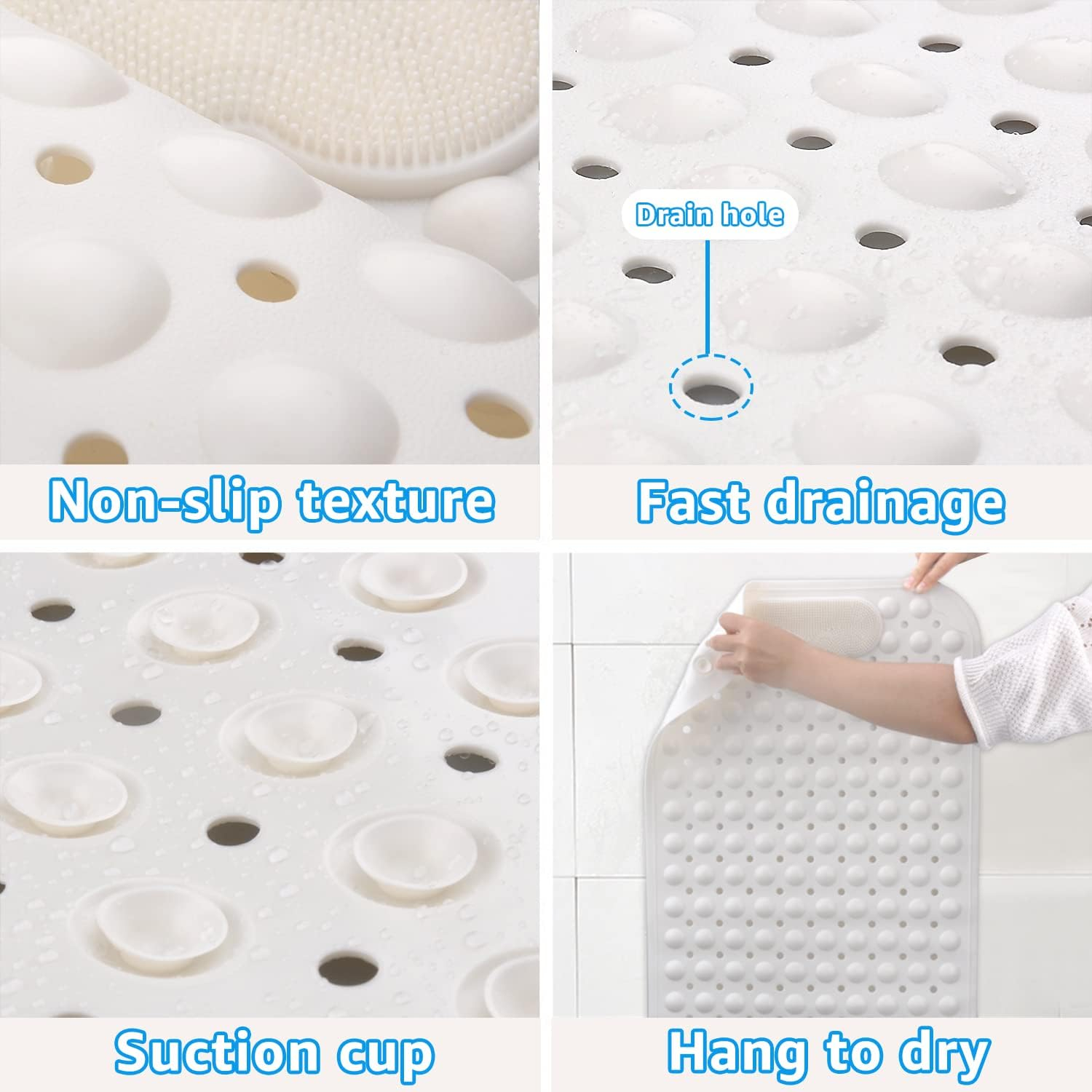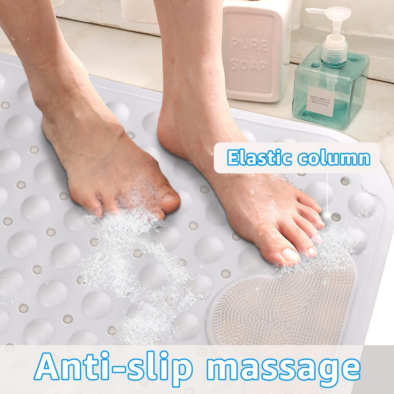 Designul masajului: covorașul de duș non-alunecare are efectul de a ușura oboseala și de a promova circulația sângelui. Mișcați-vă picioarele înainte și înapoi peste perii pentru a masa și a freca picioarele. Duș Mat Non-Alpitură Rectangular