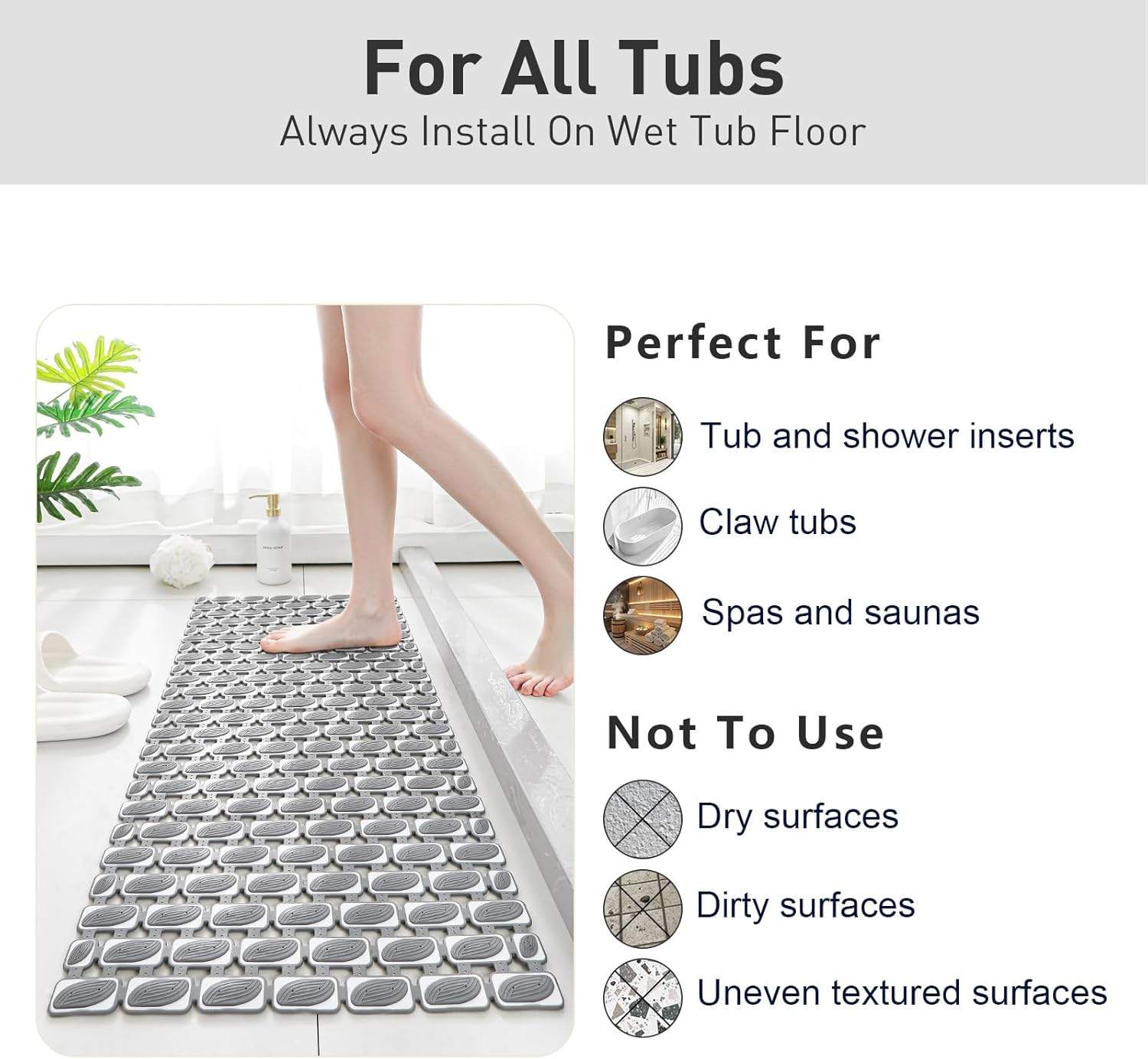 Fit cu succes – Trim to Your Perfect Size No more think on still tomate necorespunzătoare! Covorașul nostru de baie pentru cada non alunecare este ușor de tuns pentru o potrivire perfectă în orice cadă - fără goluri, fără deșeuri, doar un aspect fără sudură