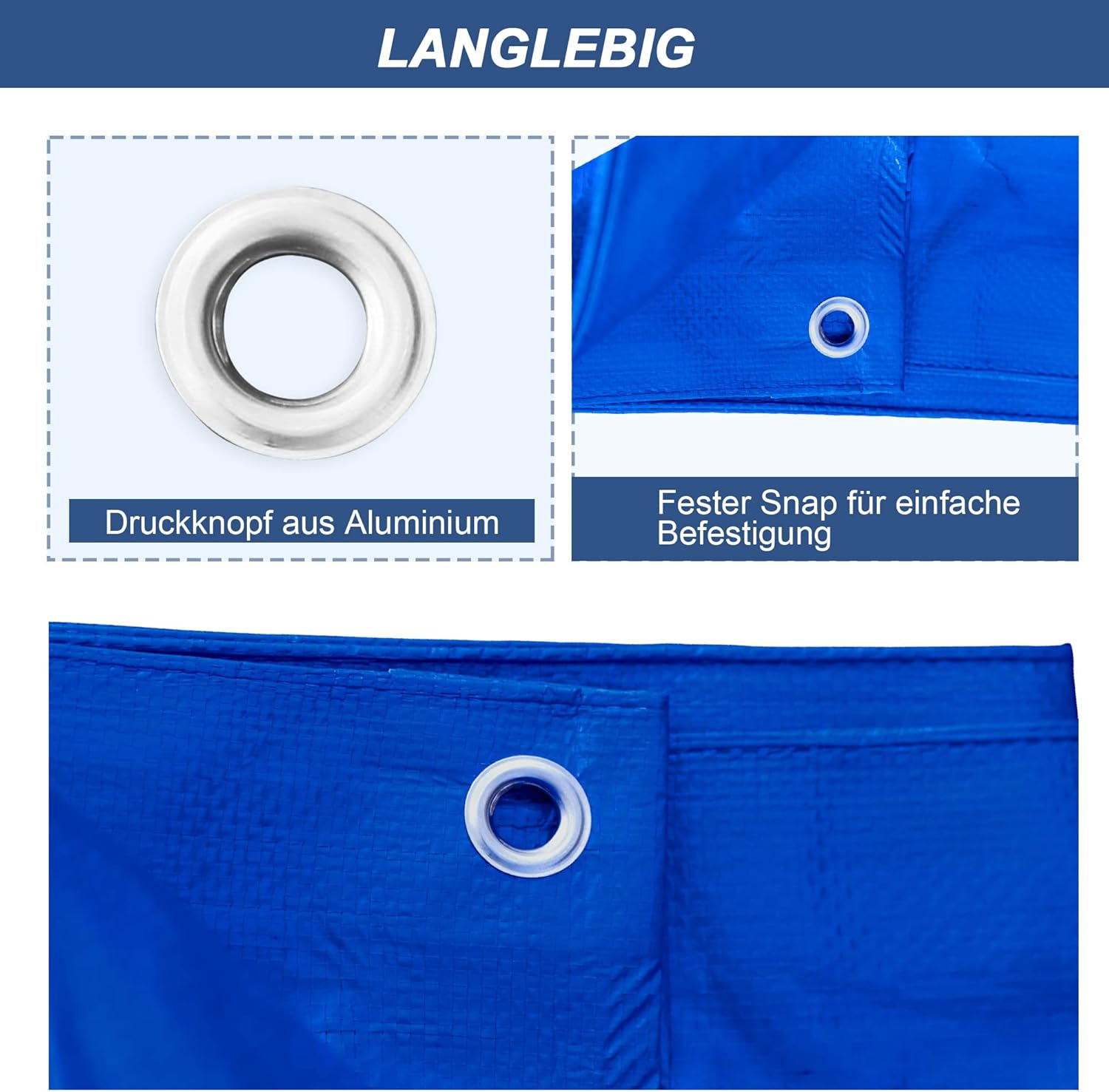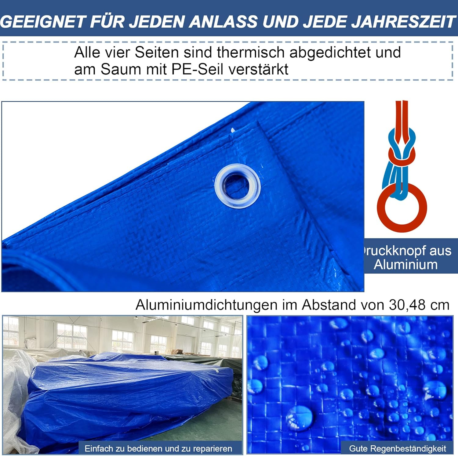 • EXTRA GROSIME ȘI PUTERNICĂ: Preparat de polietilenă de calitate premium rezistentă la apă 100 g/m2, În ploaie abundentă și viscol, prelatacii noștri păstrează lucrurile cât mai intacte și uscate posibil. Prelate din plastic de înaltă calitate protejează orice element de influențele meteorologice extreme