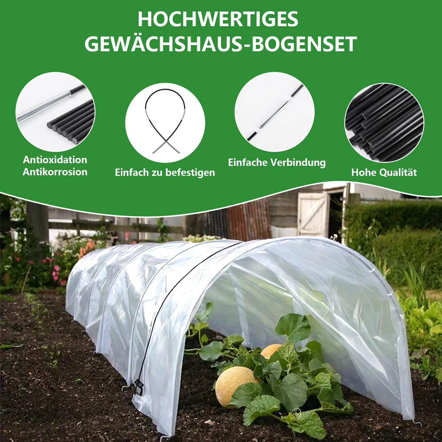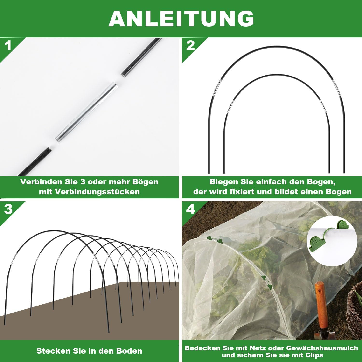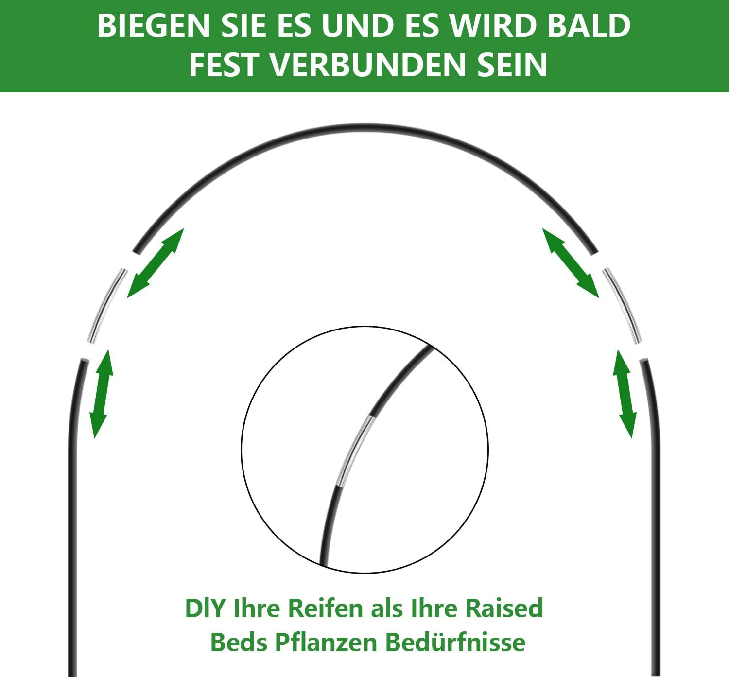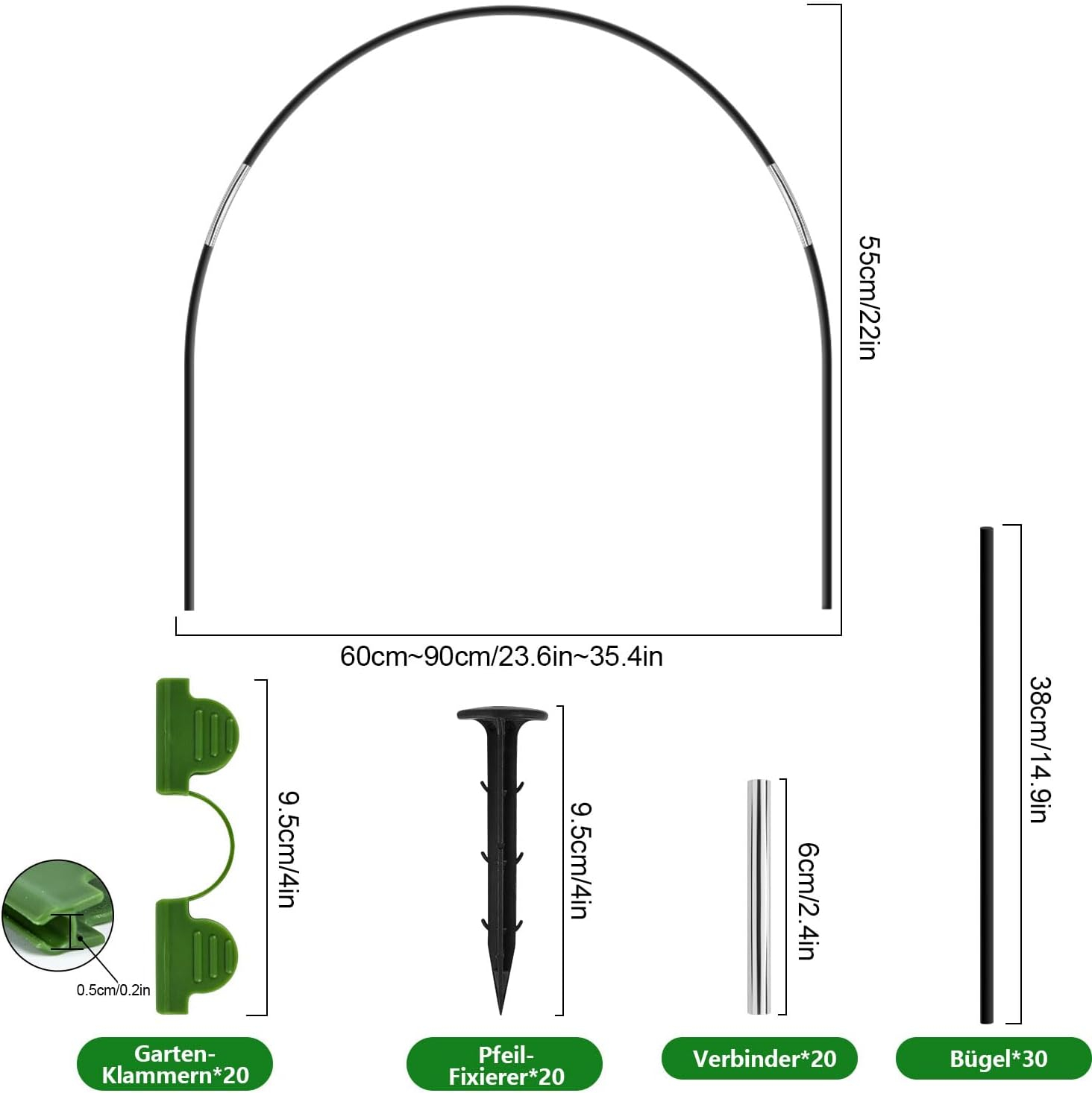 Politunenel pentru anvelope cu efect de seră: acest produs include 30 de bucăți de 13 cm stâlpi din fibră de sticlă, 20 de piese de împământare, 20 de piese de țevi de legătură, 20 de bucăți cleme cu două fețe de film cu efect de seră și 1 pereche de mănuși. Durabil și stabil: arcul tunelului învelit cu plastic, care este puternic și stabil și are o flexibilitate bună. Conectorii sunt confecționați din oțel galvanizat și nu vor rugina. Pieselele pot fi folosite în sezonul următor. Tunelul net de protecție a legumelor: proiectat pentru mulciurite de plante, protecție împotriva înghețului și sere, oferă un mediu ideal pentru germinarea rapidă și creșterea răsadurilor. Coșurile de sere de pat ridicate vă pot proteja plantele de păsări, dăunători și insecte, oferind în același timp o bună protecție împotriva înghețului, ploilor abundente, luminii solare puternice și altor furtuni. Arcadele tunelului instalației de bricolaj: puteți combina mai multe anvelope pentru a vă construi propriul tunel de plante, puteți combina împărțirea cu 3 secțiuni de spicare / secțiune / 5 secțiuni sau mai multe secțiuni pentru a vă face propriul tunel de plante DIY.