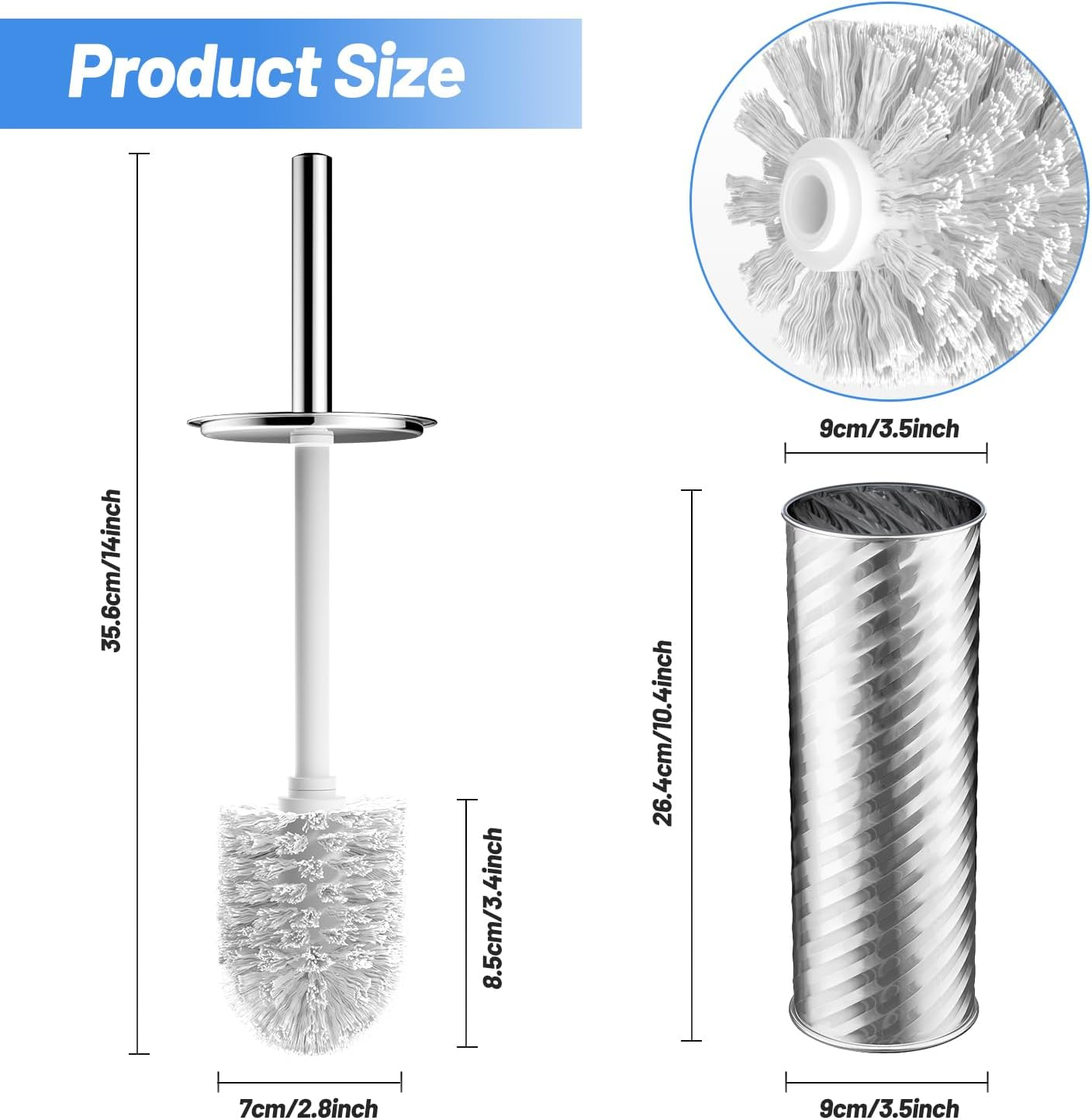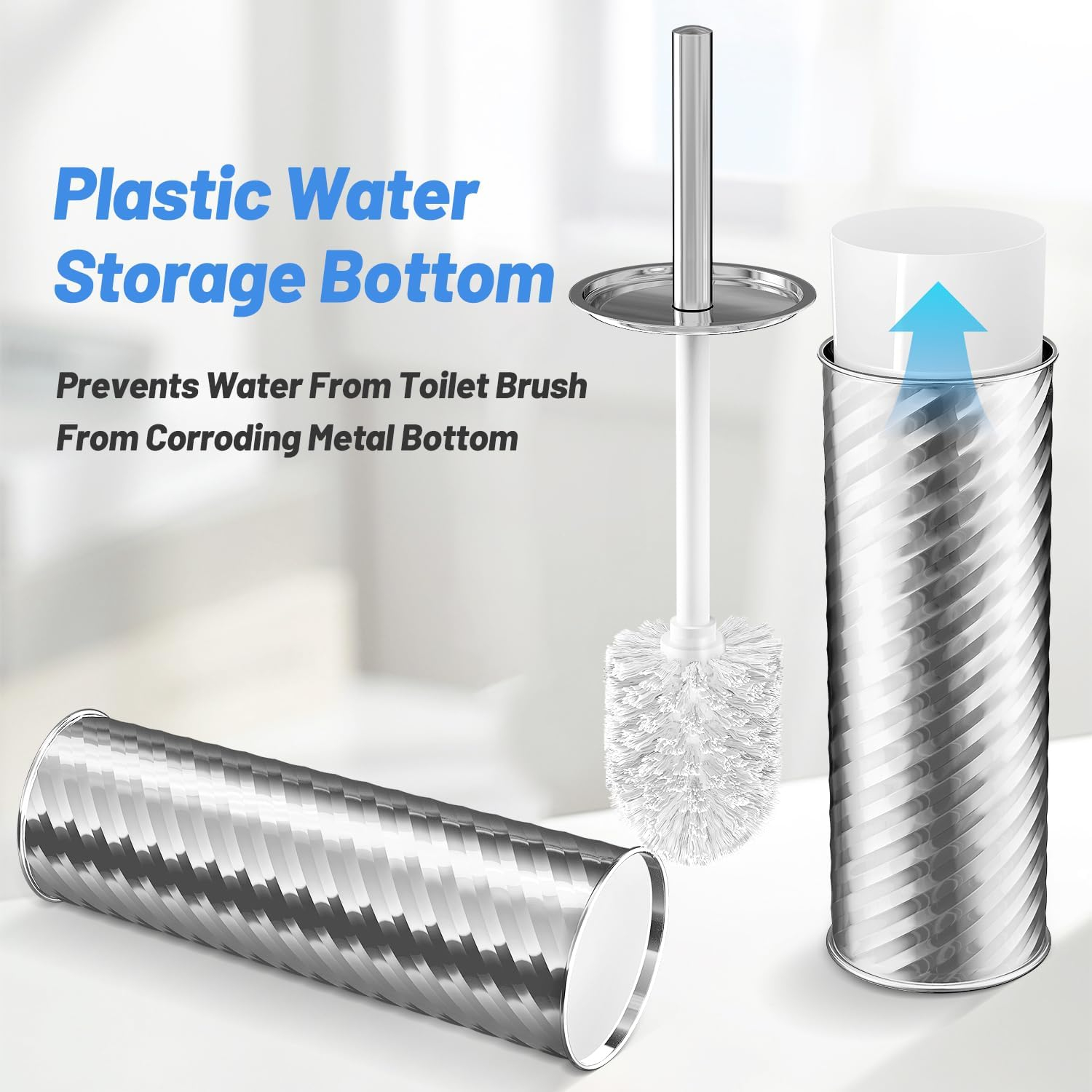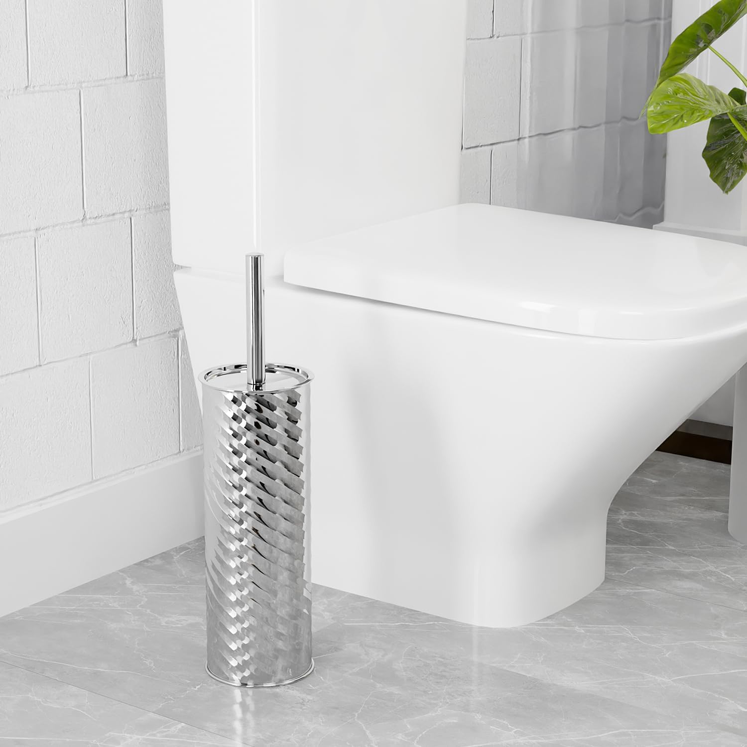 Perie de toaleta cusuport argintiu si maner din otel cu 2 capete